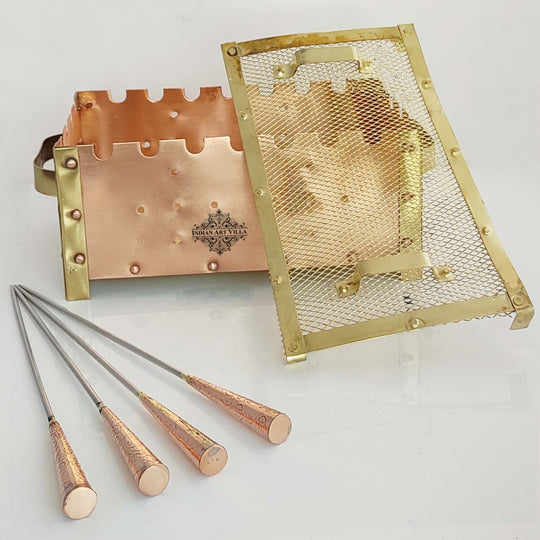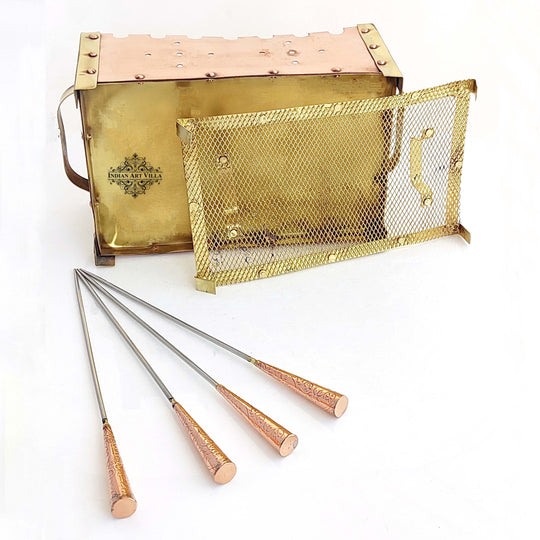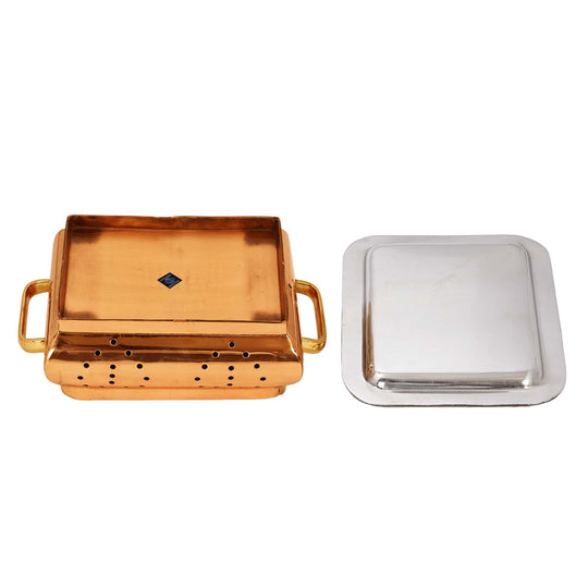 Copper-Brass Barbeque from Indian Art Villa is a light-weight tabletop food warmer that will definitely add sparkle to your next dinner party or barbeque meal. You can choose to keep your barbeque warm and juicy, using heat from a lit charcoal or tealight candles. The copper barbeque and Food Warmers will definitely add a royal, old-worldly feel to your table. Browse handmade sigdi food warmer, copper barbecue for paneer tikka, copper serving bowls & many items here.