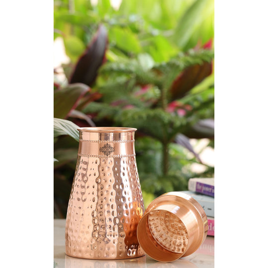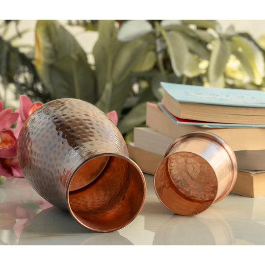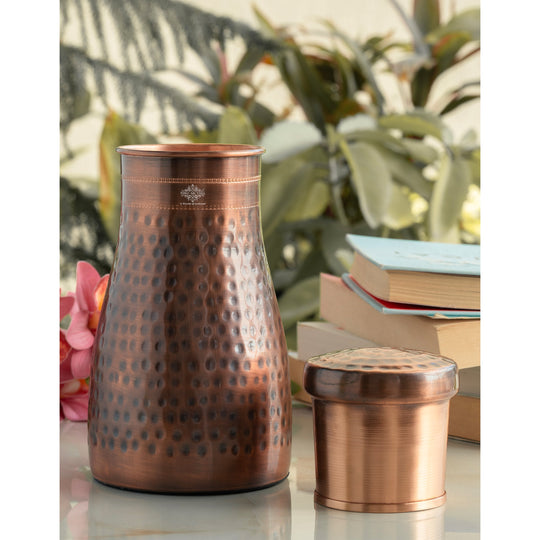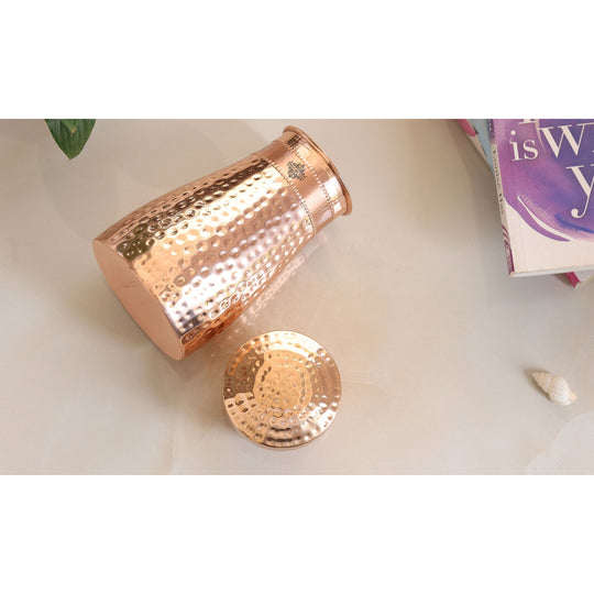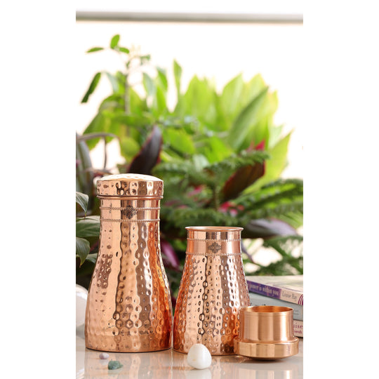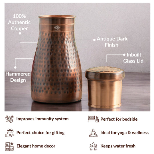 Pure Copper Hammered Silk Finish Bedroom Bottle with Inbuilt Glass