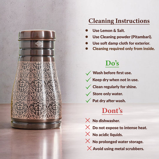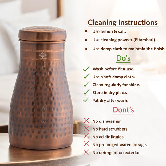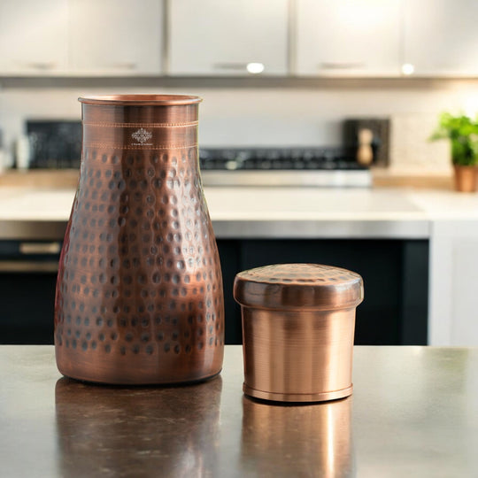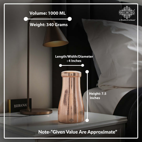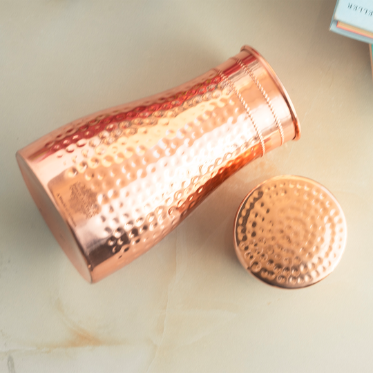 Pure Copper Bedroom Water Bottle with Inbuilt Glass
