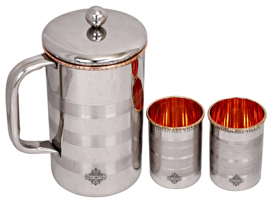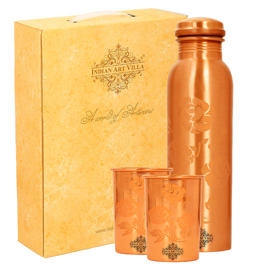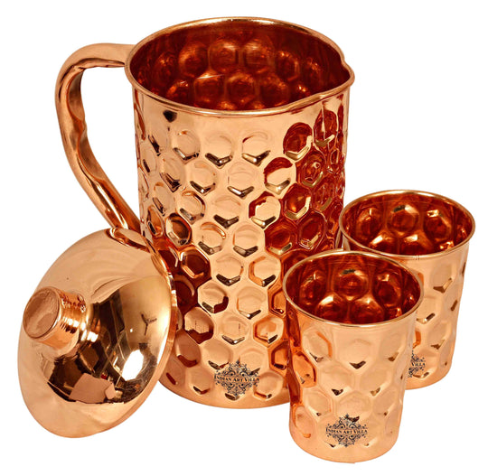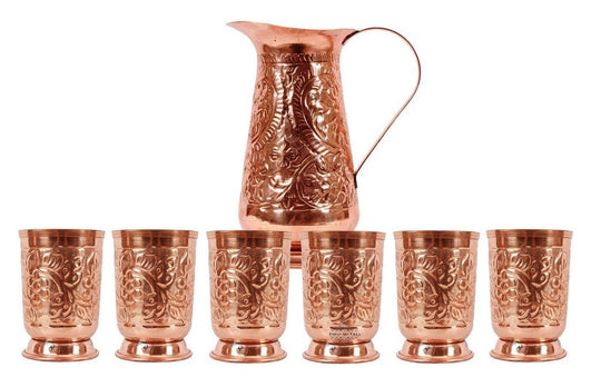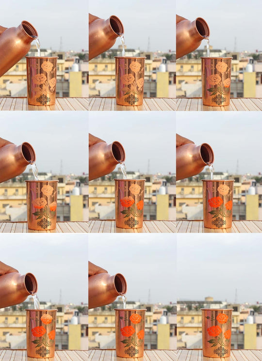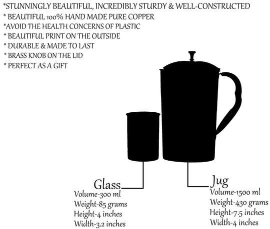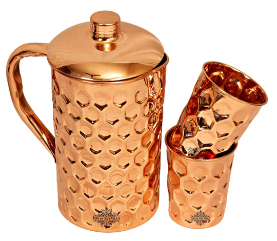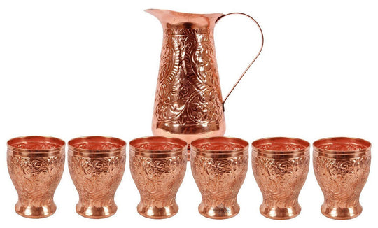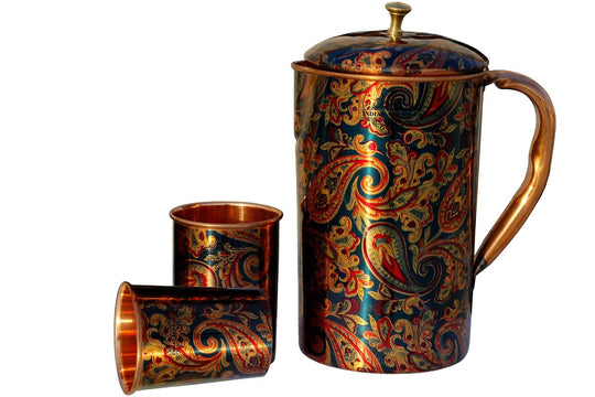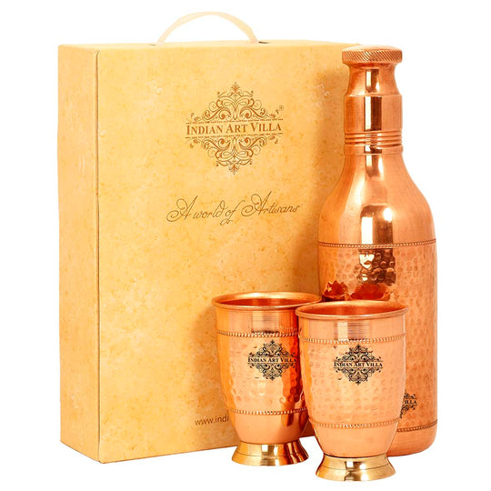 In a world of Pollution and unusual health problems, nature has gifted us with few ways to still get on and Copper metal is the best among them. Regular usage of Copper to drink water or to store food has proven to be beneficial. Variety of Copper drinkware combo’s available at Indian Art villa. Buy copper drinkware combo, Copper bottle set, Copper handmade jug combo, copper link proof bottle, pure copper water pot & glass set. Get these products and start a healthy life.