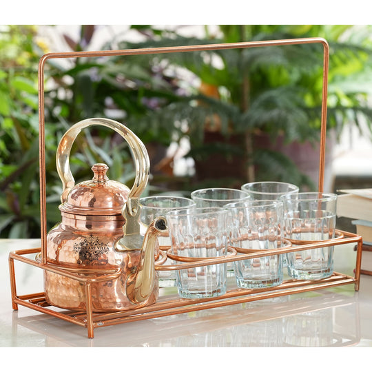 Copper tea kettles bring to mind images from the Victorian era and give them impression of a rustic yet traditional and practical approach to life. Copper is an extremely ductile and malleable metal, and that makes it one of the fastest conductors of heat and electricity. Buy unique copper tea pots/containers online at Indian Art Villa - Mughlai tea pots, Hammered milk pot, Turkish cattle mug etc for parties and gifting.