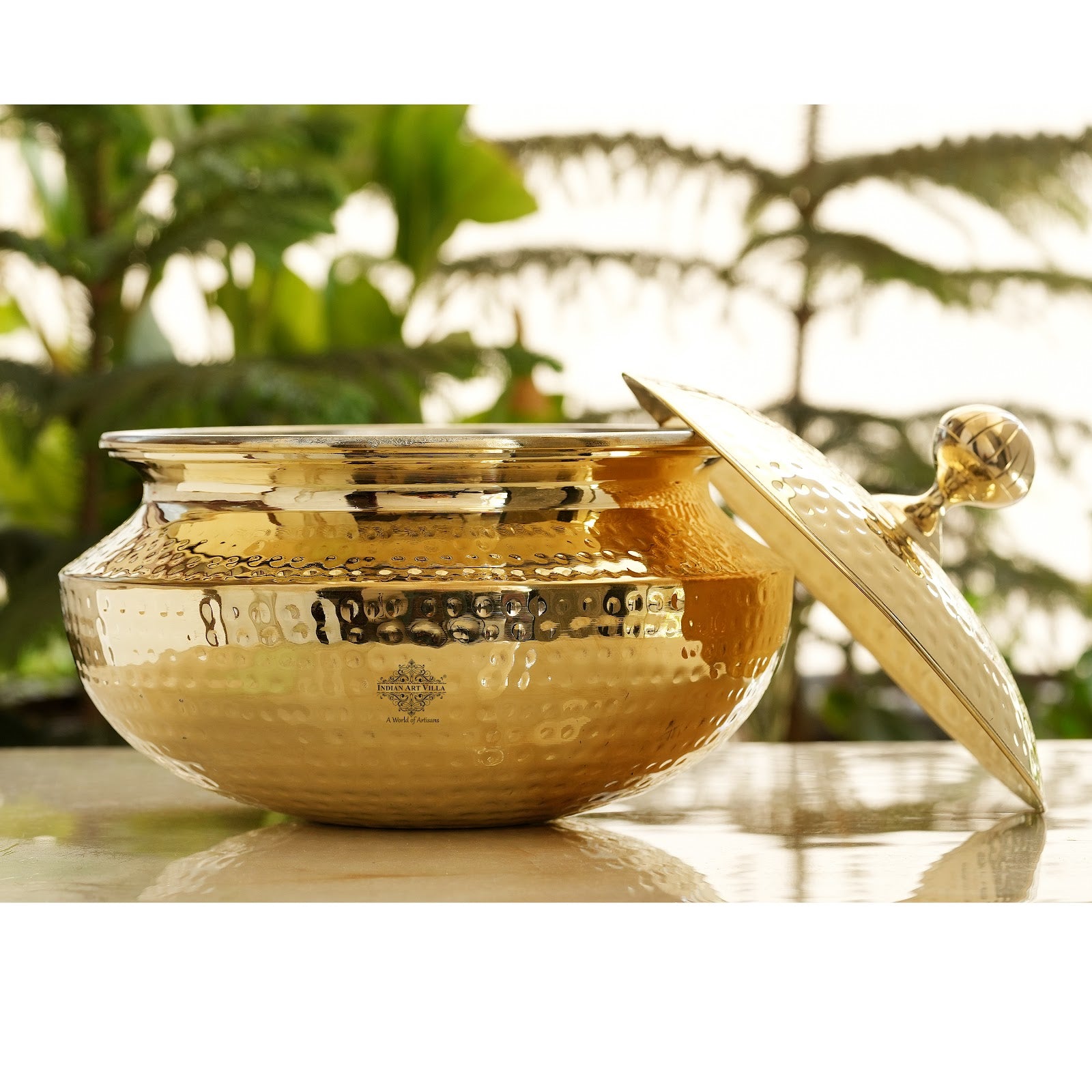 Indian Art Villa Pure Brass Handi / Degchi With Tin Lining Inside, Handi with Lid, Cookware, Dinnerware
