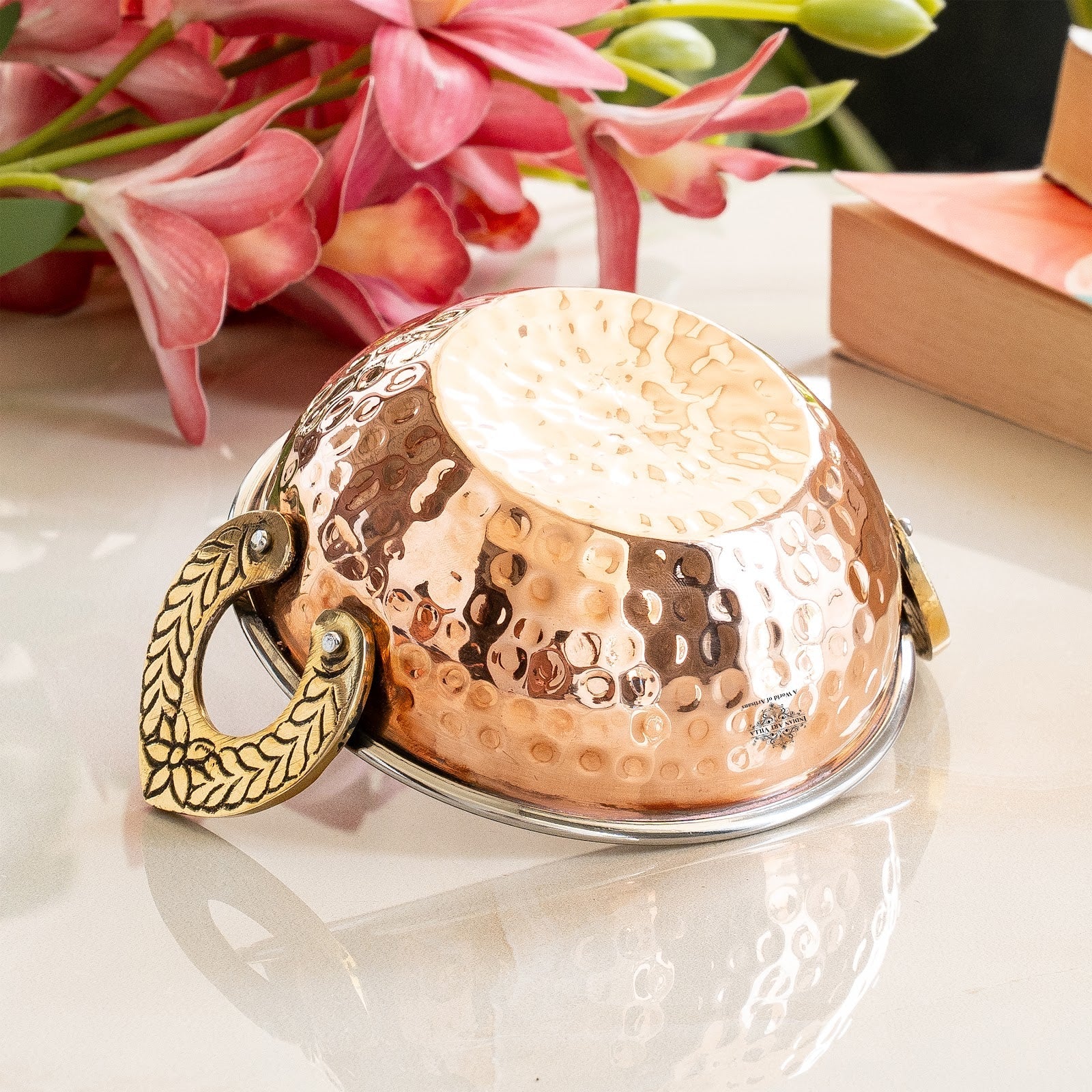 Steel Copper Hammered Design Kadhai - Elegant Serveware with Brass Handles