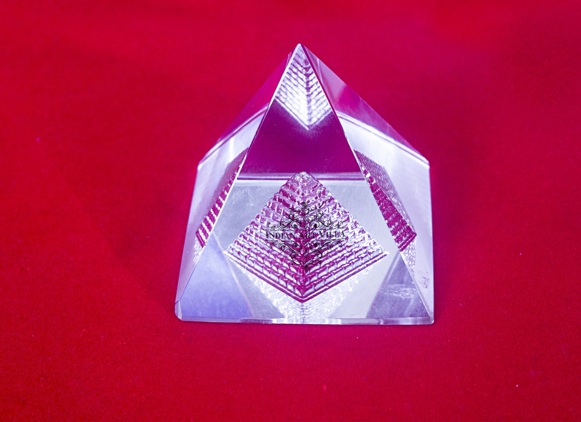 Indian Art Villa Crystal Vaastu Pyramid, a stunning addition to elevate your surroundings and foster positive energy and concentration. Crafted with precision, this pyramid serves as a powerful Vaastu tool to enhance the flow of positive energy within your home, office, or hotel space. Made from high-quality crystal, this beautiful pyramid is not only an elegant décor piece but also holds significant spiritual value. Its unique design aligns with ancient Vaastu principles, which are believed to bring harmony and balance to the environment. The Crystal Vaastu Pyramid can be strategically placed to create a serene atmosphere, encouraging clarity of thought and promoting focus. Its subtle yet impactful presence can aid in creating a more conducive environment for meditation, work, and relaxation. Embrace the transformative power of the Indian Art Villa Crystal Vaastu Pyramid and experience the profound effects it can bring to your surroundings, helping you unlock your full potential and embrace a more balanced and fulfilling life.