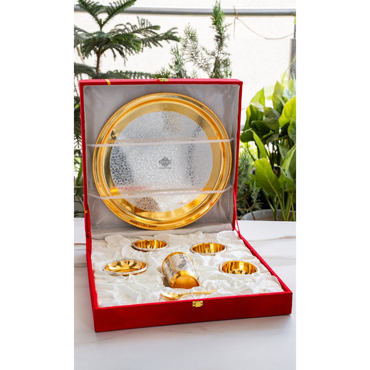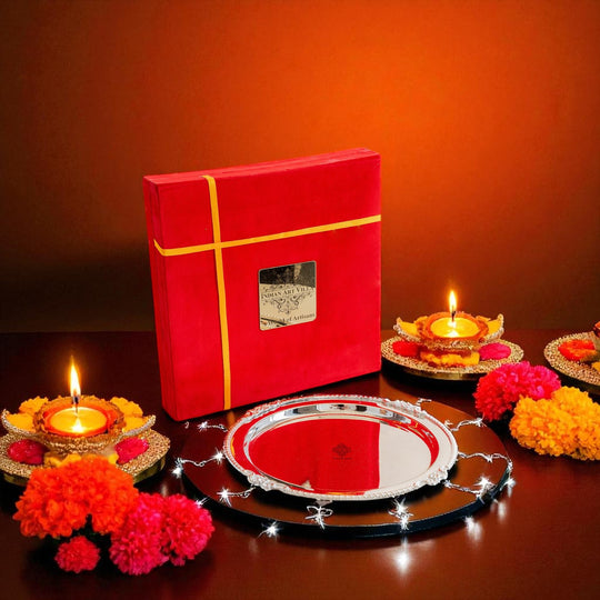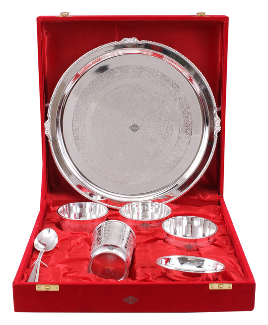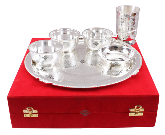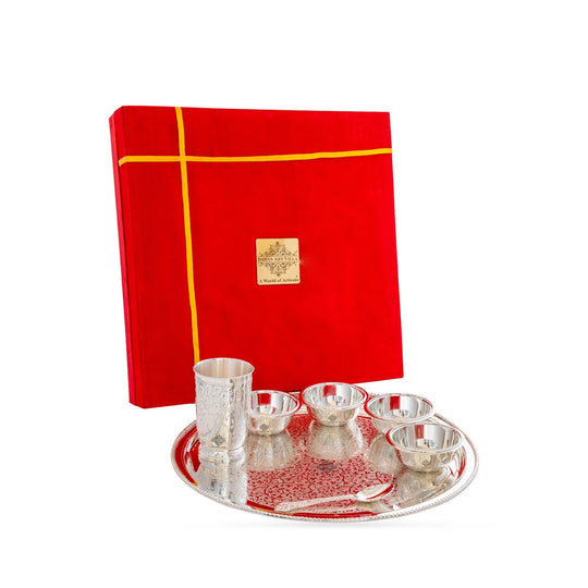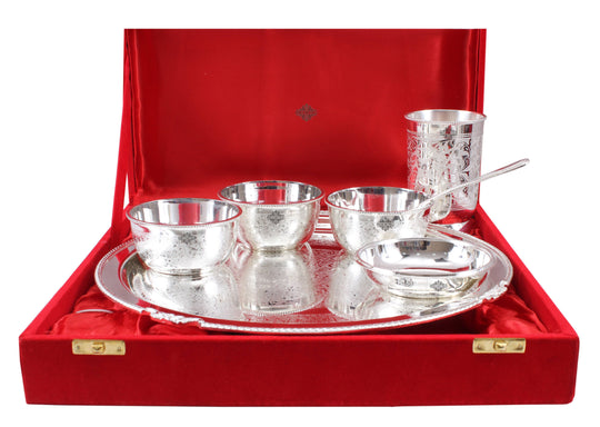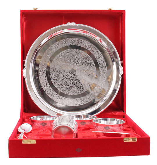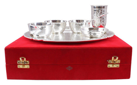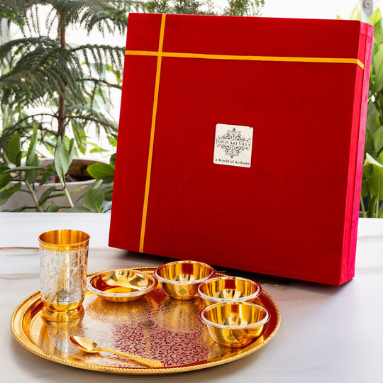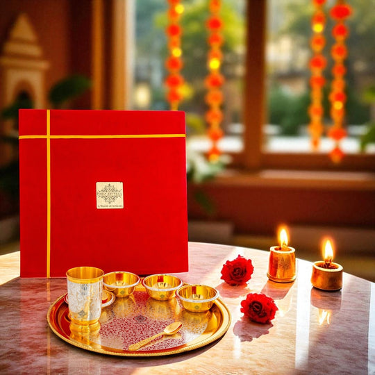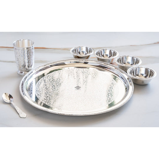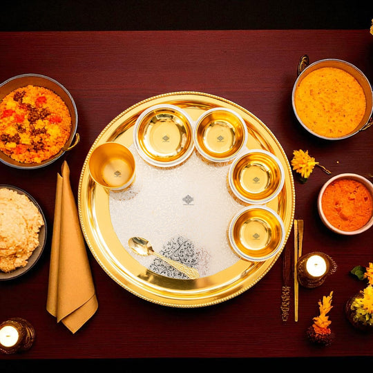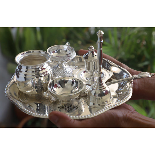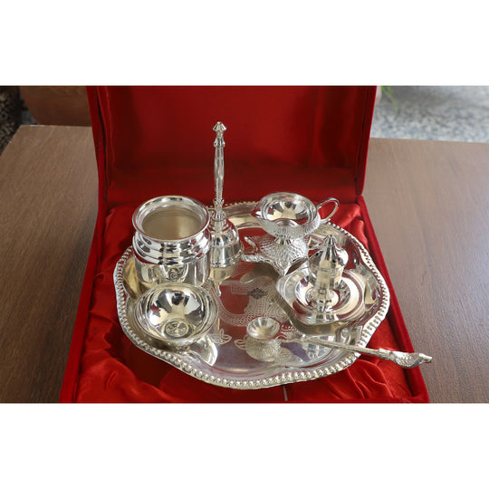 Here is an ancient custom in India of using decorative and valuable silver dinner sets. From weddings to housewarmings the subtle shine of silver can be found everywhere! Silver dish sets are 100% bacteria-free. Additionally, silver plated items require less maintenance. These utensils do not need to be sterilized. It is enough to simply wash and rinse them in hot water. Buy unique silver plated mandir pooja essentials & decoration items online from Indian Art Villa.
