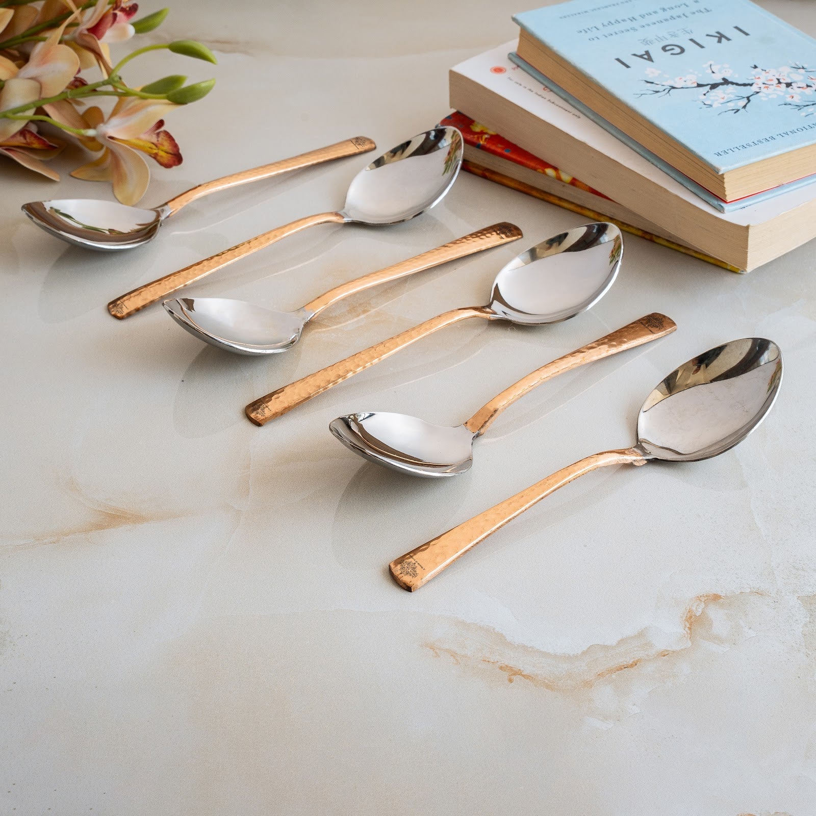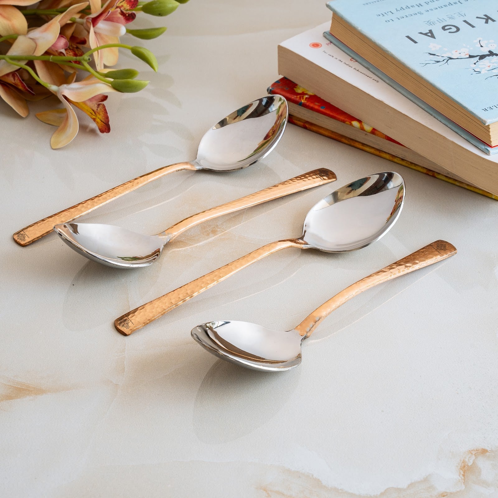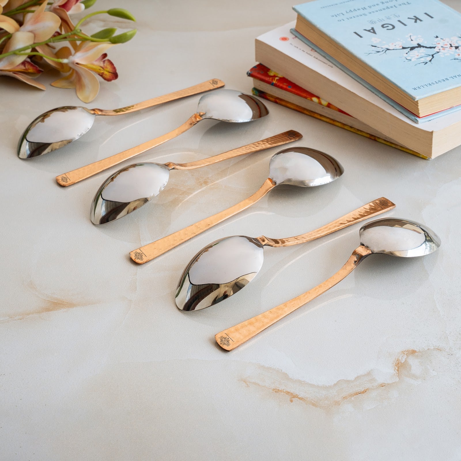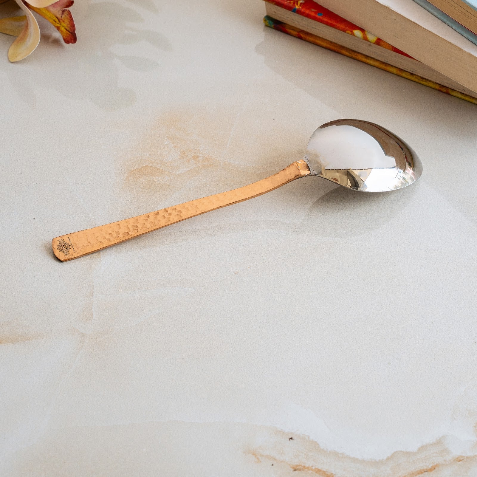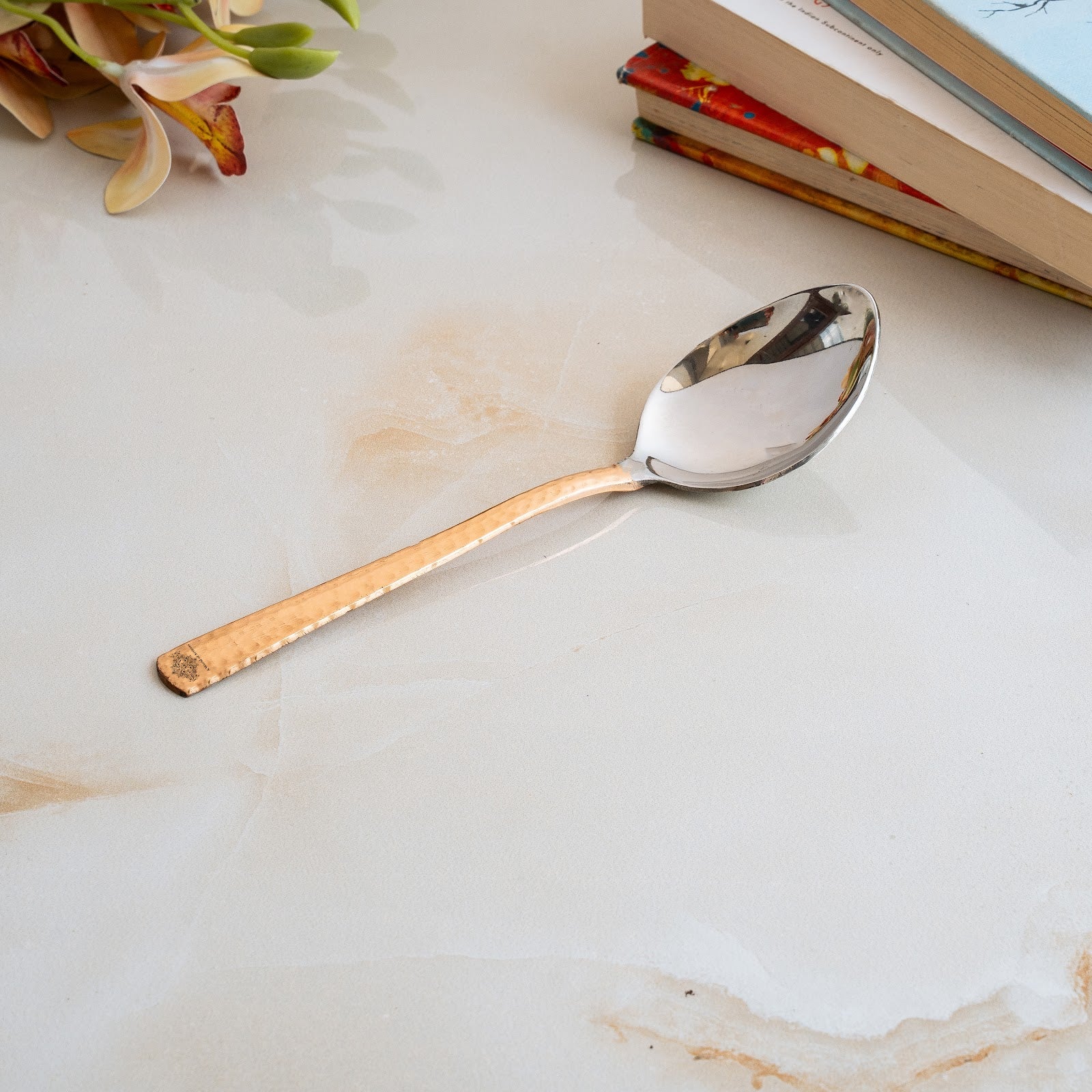 • IndianArtVilla Steel Copper table Spoon, The Handmade Stainless Steel, and Copper Make your home more lively and cheerful with this brilliant decor piece. Designed to accentuate the beauty and ambiance it brings soothing vibes to your abode and raises its contemporary look manifolds.