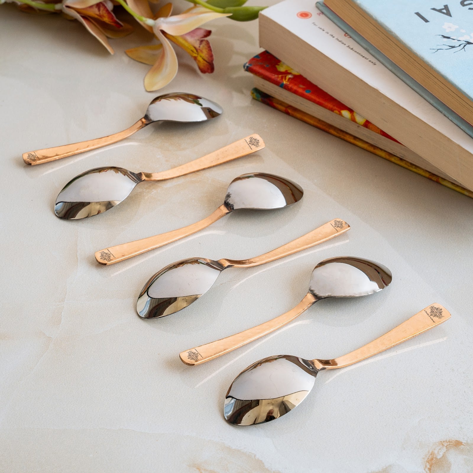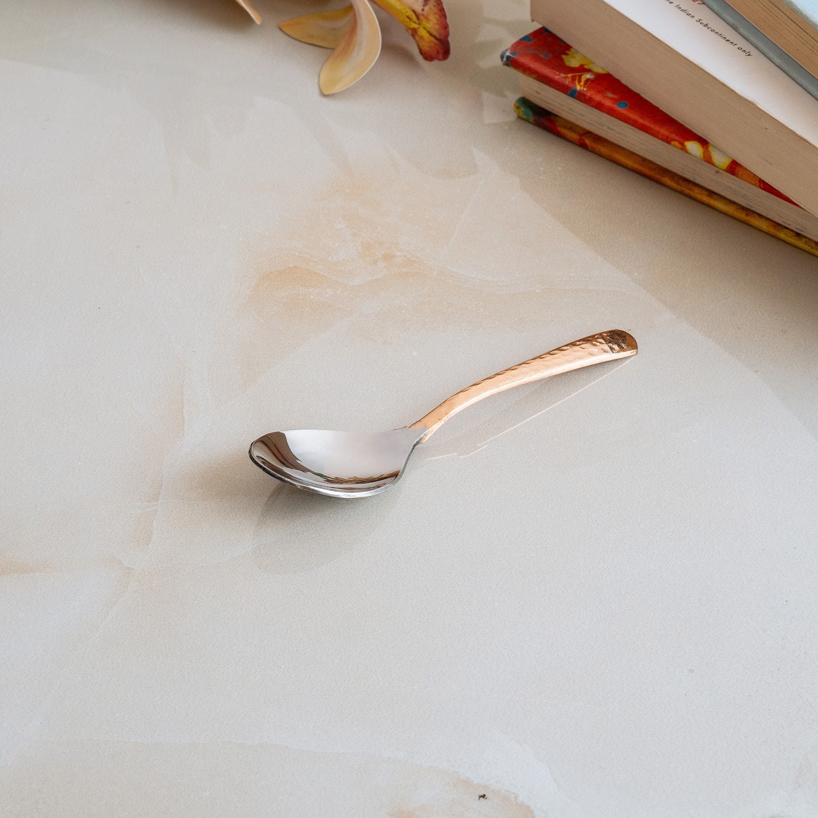 Ideal for homes, cafés, restaurants, and festive gatherings, this steel copper spoon offers durability and style in one elegant piece. To help maintain its appearance and performance, the spoon comes with an IAV Cleaning Powder (Sample) along with an instruction booklet, guiding you on the correct way to use and care for steel copper cutlery.