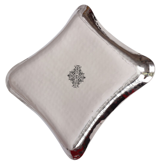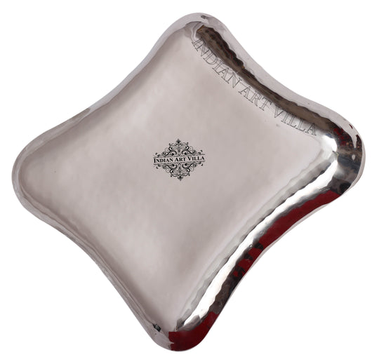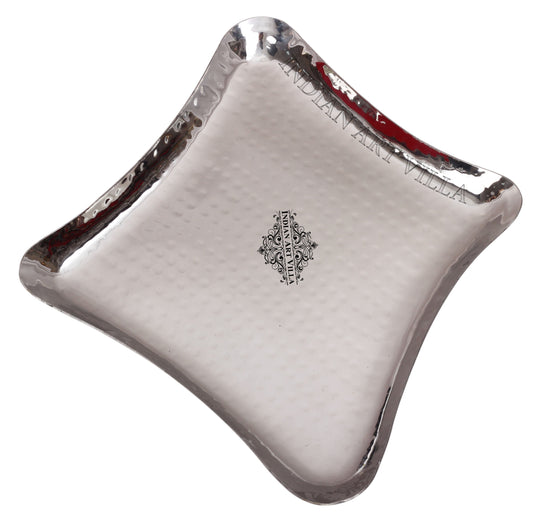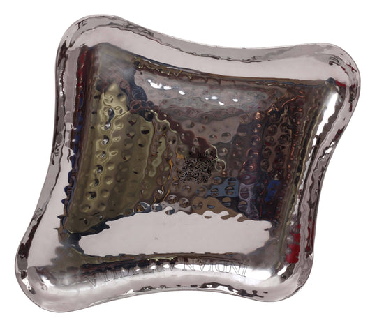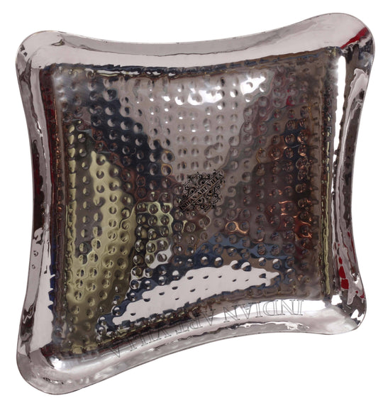 IndianArtVilla Pure Steel Square Hammered Design Platter Tray for Serving Dishes