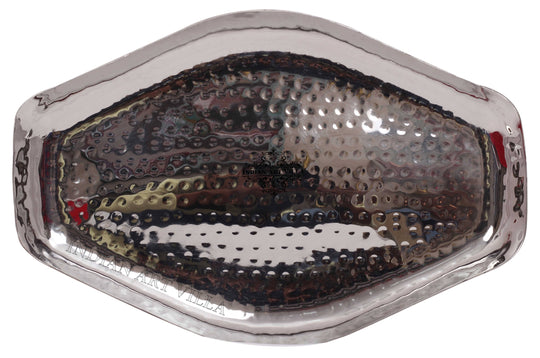 IndianArtVilla Pure Steel Hammered Rectangular Platter Tray | Serving Dish Tableware