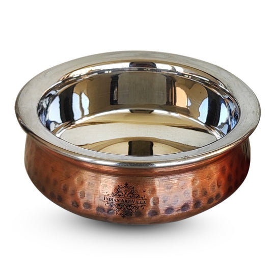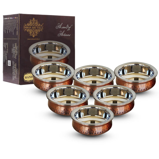 Indian Art Villa Steel Copper Serving Antique Dark Tone Handi Bowl, Serveware & Tableware
