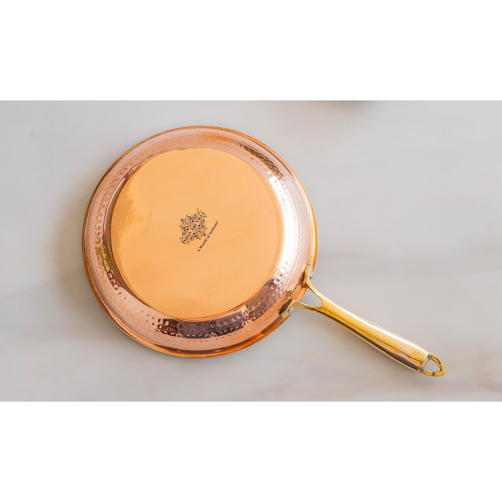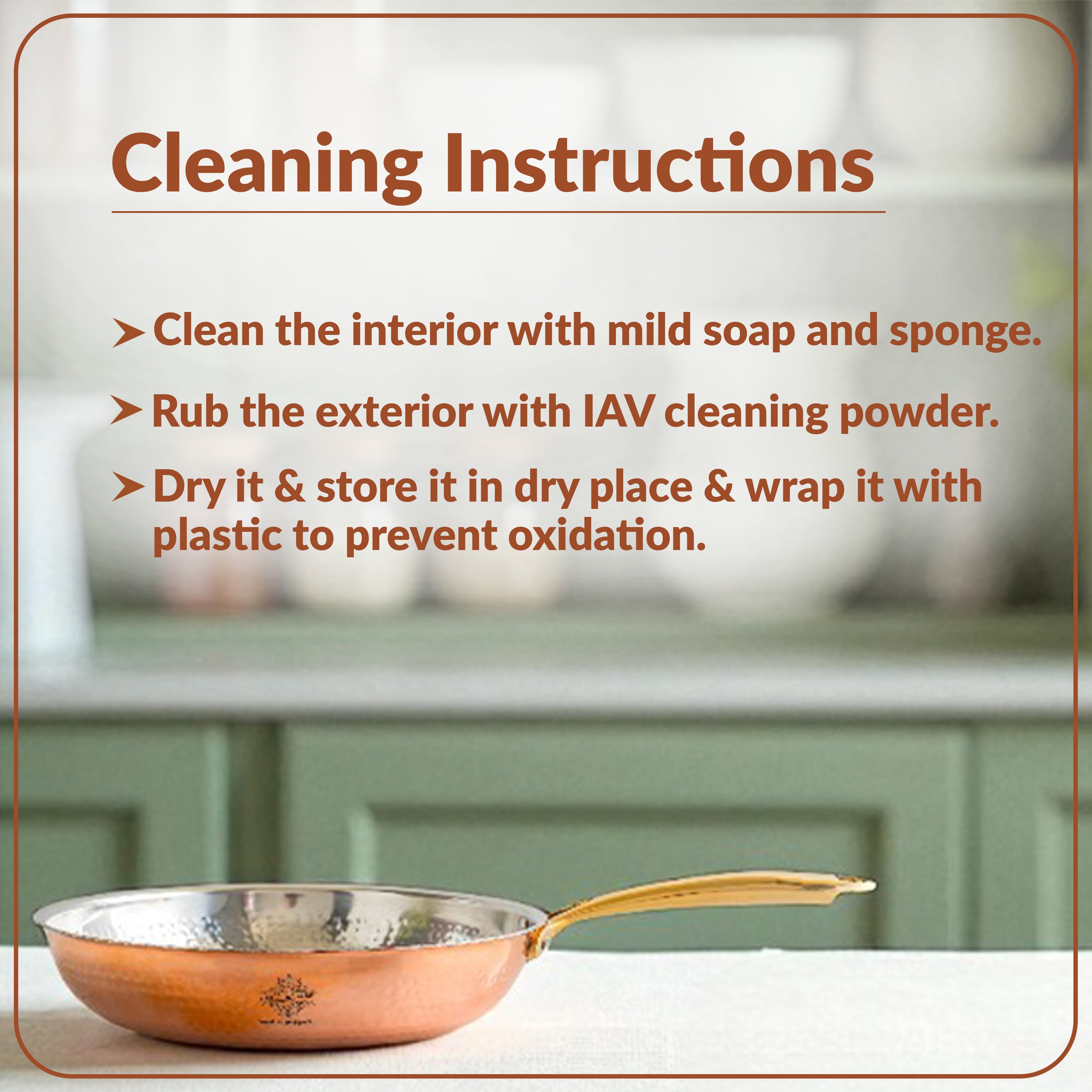 The hammered copper exterior gives it an artisanal touch while ensuring fast, uniform heating. The tin lining inside prevents food reactions, making it ideal for frying, sautéing, or preparing curries. Whether you're cooking for daily meals or special occasions, this fry pan ensures you retain the original flavor of Indian recipes.