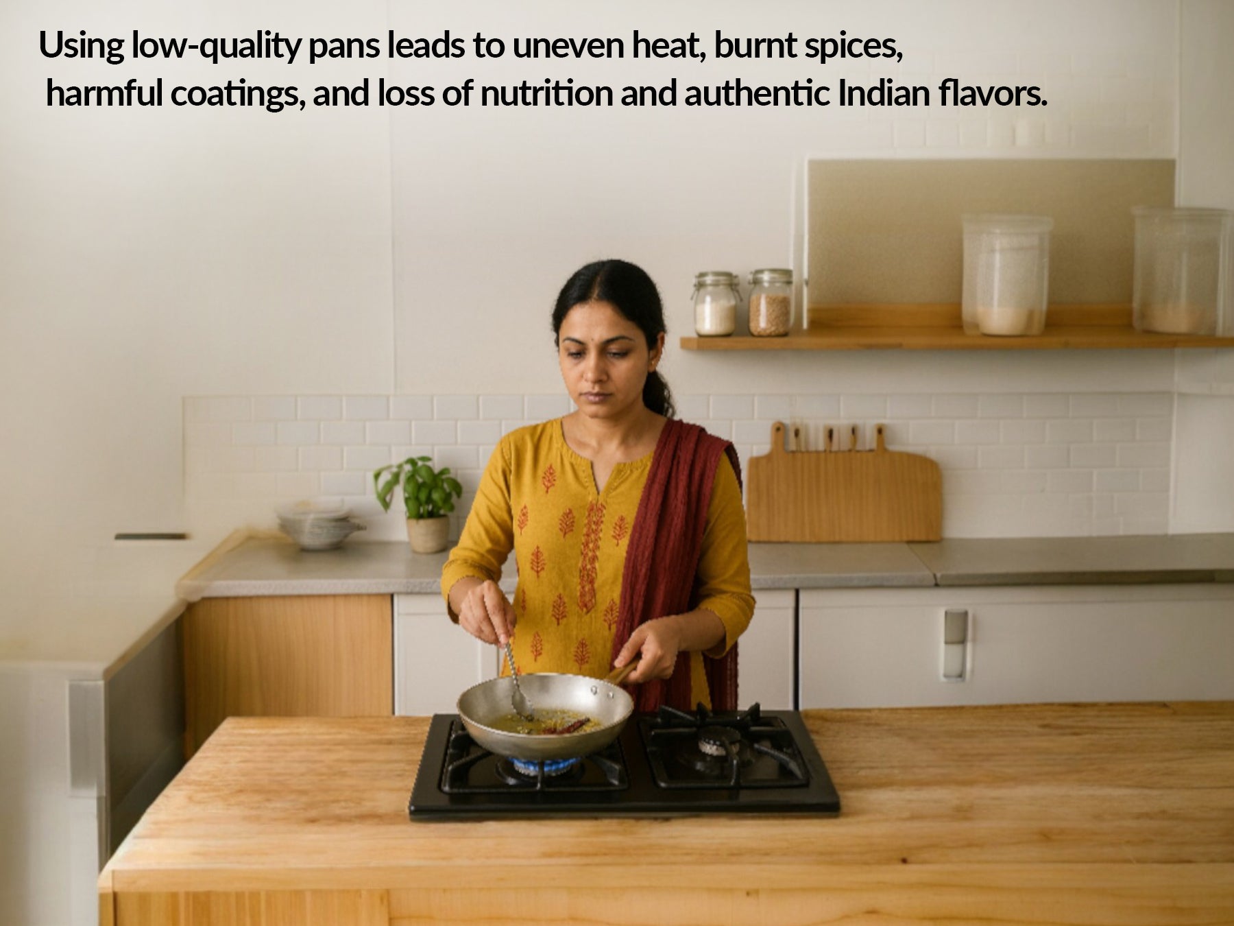 Healthy Cooking Tradition – This steel-copper fry pan revives ancient Ayurvedic cooking practices while avoiding harmful coatings or non-stick layers found in modern cookware.
