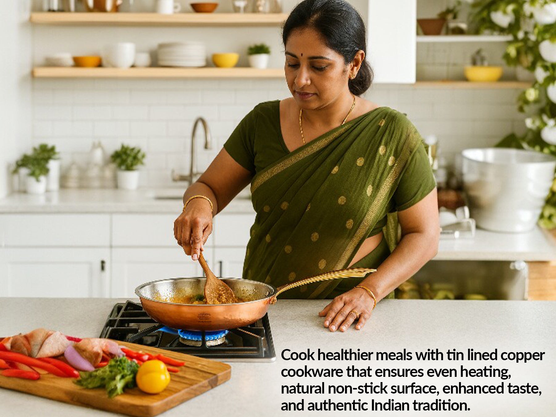 - Traditional Tin Lining Inside – Food-safe tin (Kalai) coating ensures your food doesn't react with copper while retaining the classic flavor and nutrients of Indian cuisine.