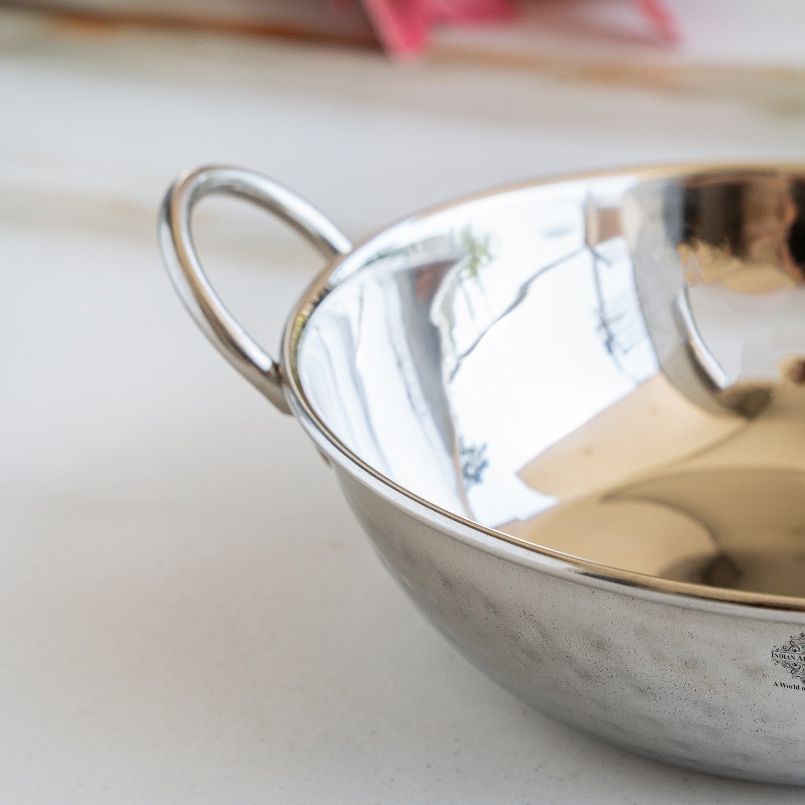 Indian Art Villa Presents Best Quality Pure Steel Hammer Kadhai with Embossed Handle. We offer the best affordable prices & Free Shipping PAN India. This Beautiful Pure Steel Hammer Kadhai with Embossed Handle can be used as a home decor item or they can also be gifted to your near and dear ones. Also, Make your home more lively and cheerful with this brilliant decor piece. If you’re looking for the finest quality Stainless Steel Kadhai, you have come to the right place! We, at Indian Art Villa, have around a decade-long experience in terms of manufacturing Steel products and have our own unique collection of Stainless Steel Kadhai to shop from. Stainless Steel Kadhai is also becoming an integral part of modern-day kitchens. When talking about a Serveware set, it is something that has the power to make or break the beauty of the dining table. Relish Indian cuisine in Indian style! This is a set of centerpiece serve-ware for Indian food. Serve Indian dishes to your friends and family in this unique and ethnic-looking centerpiece serve ware. With this serving utensil set your Indian-style dining experience goes several notches up. Indian Art Villa Stainless Steel items have antique designs. The item is highly durable, elegant, and a wonderful addition to your Home Decor.