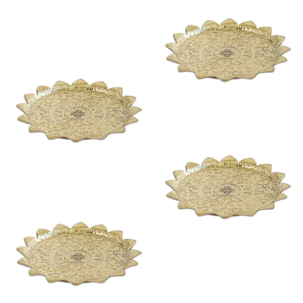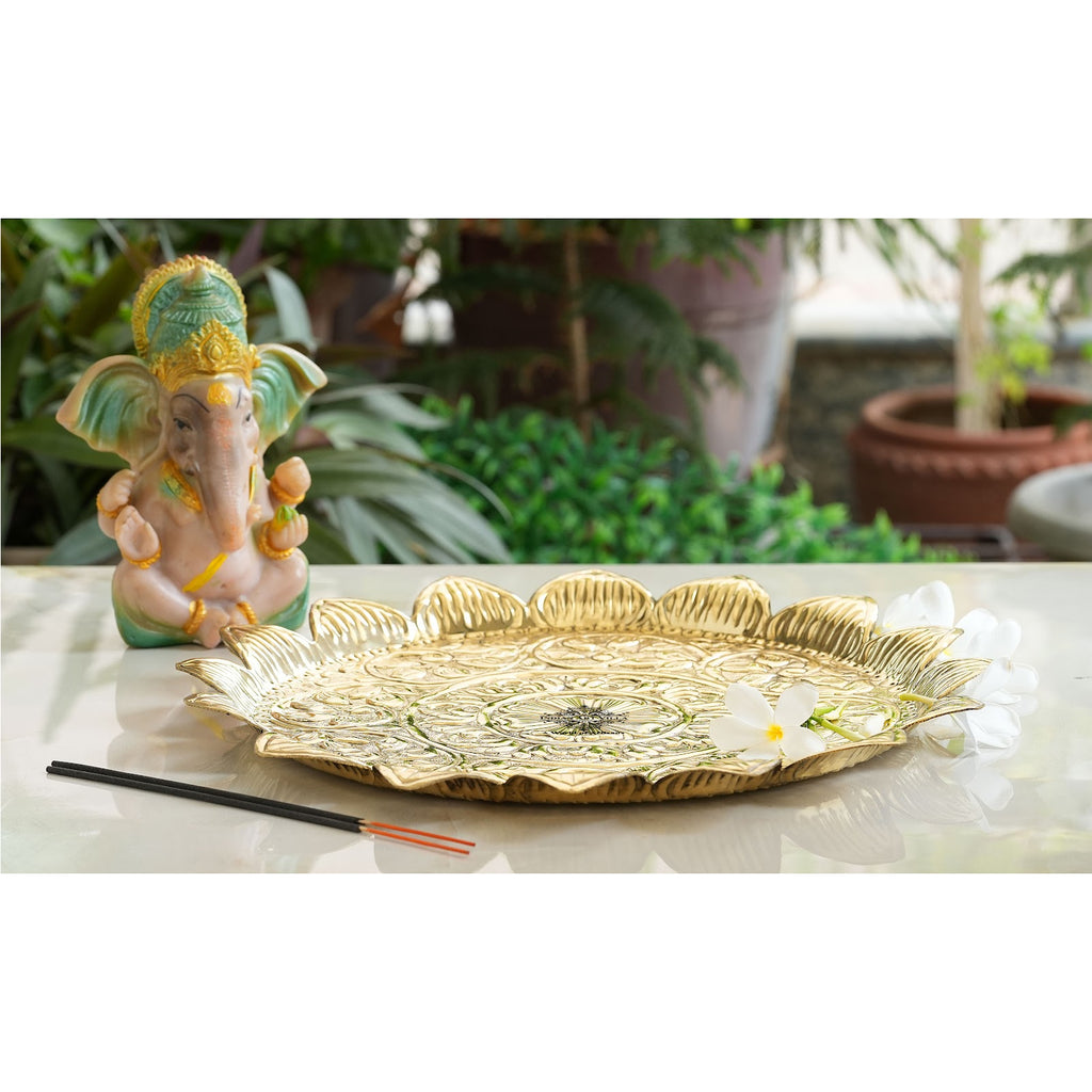 IndianArtVilla Handmade Pure Brass Flower Design Sunflower Pooja Thali - 13 dia.
