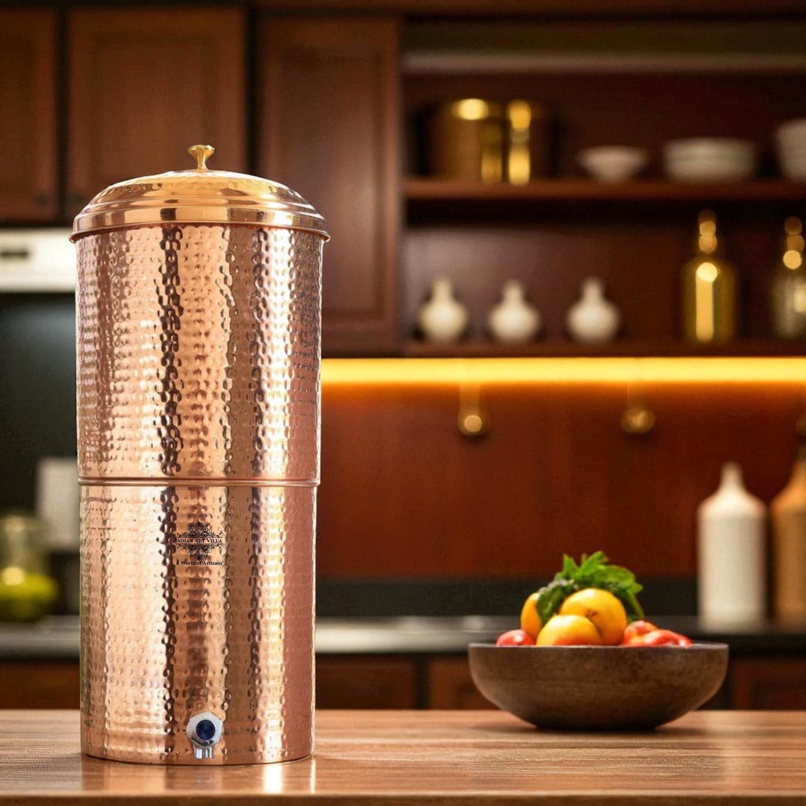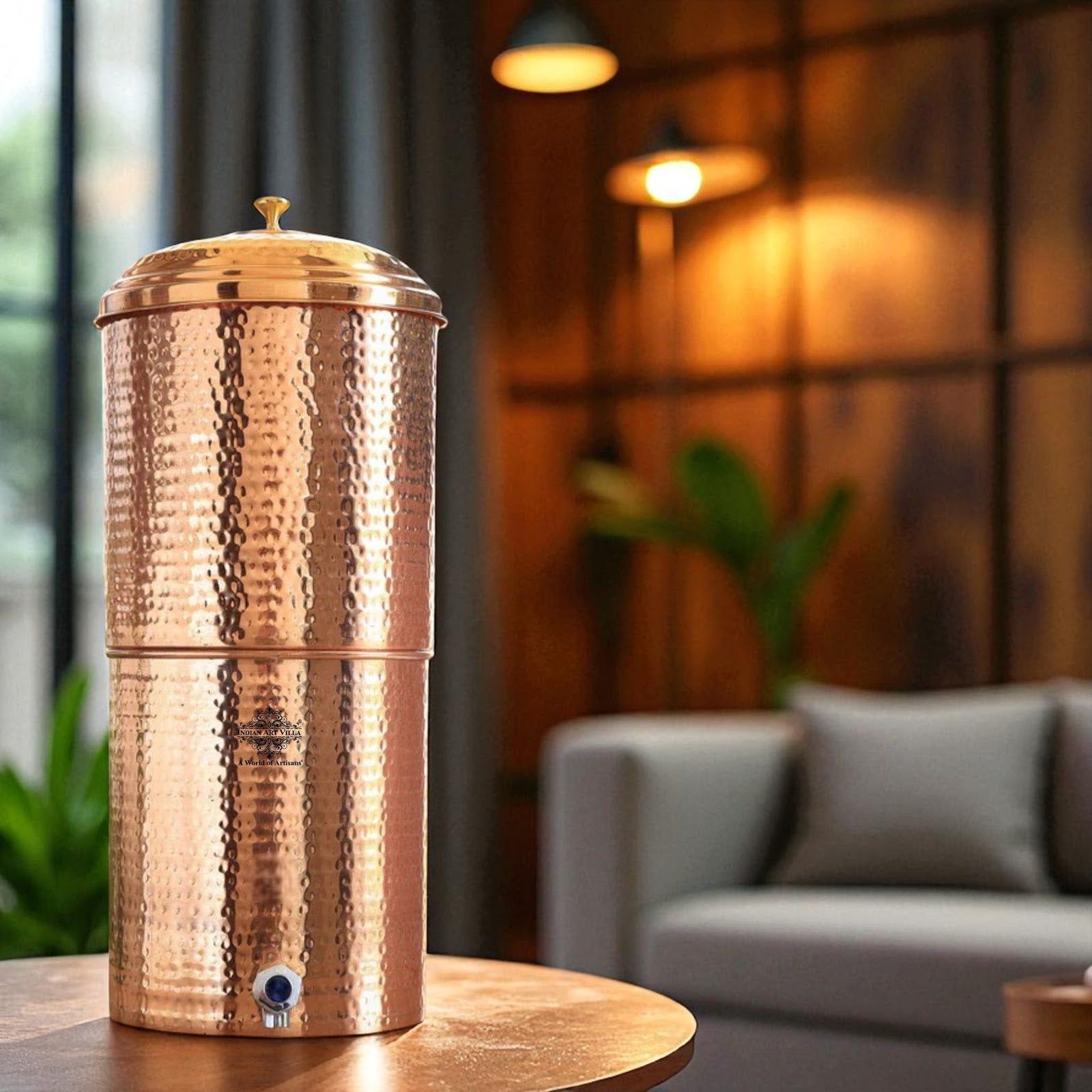• Order this Pure Copper Hammered Design Filter Water Dispenser Pot With Single Filter Candle Inside from Indian Art Villa at Great deals & offers and get a Contactless delivery at your doorstep.
