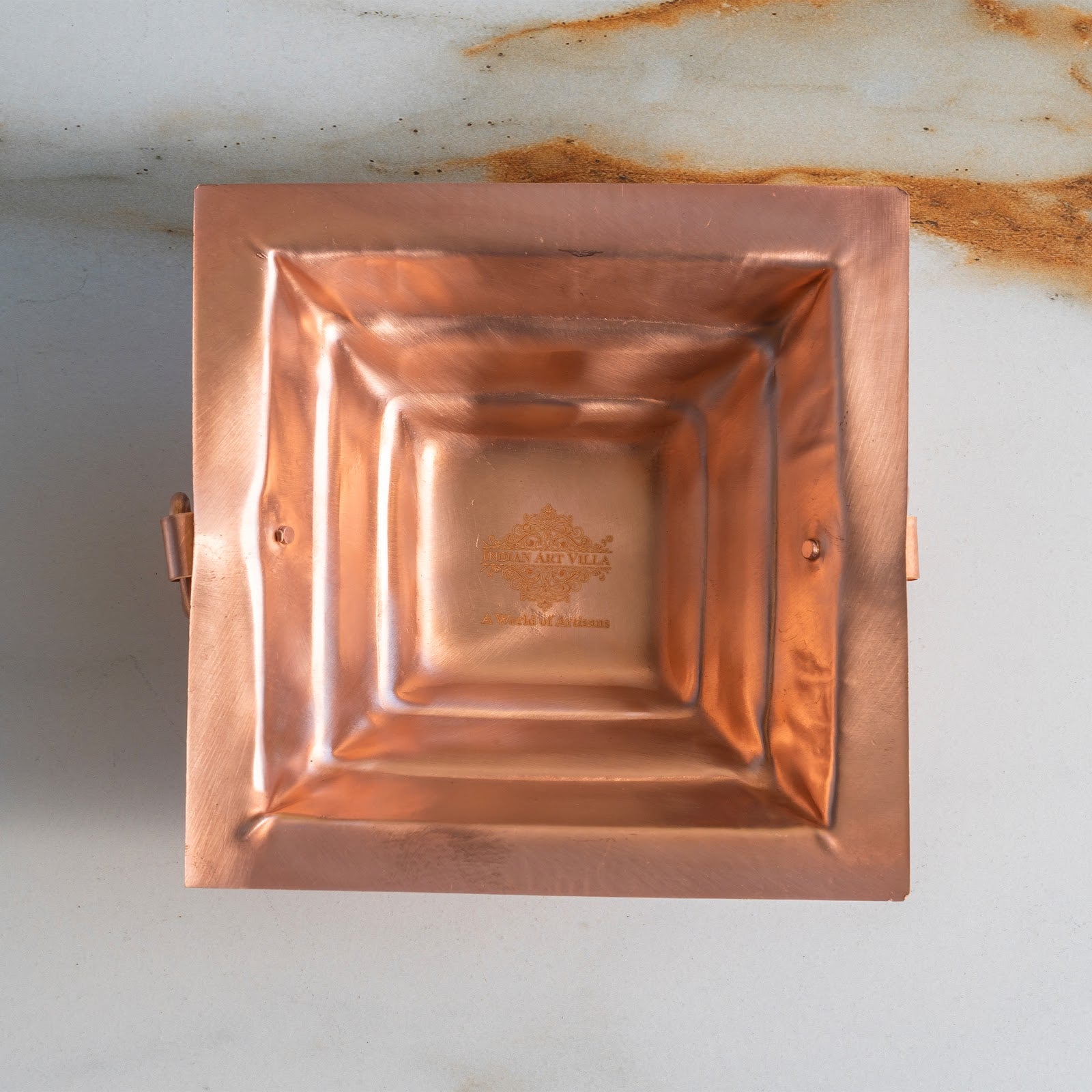 Make your special occasions more special with this pure copper Hawan Kund from Indian Art Villa crafted by skilled artisans with dedication and reverence. Made with the finest quality copper that attracts purity and positive energy, this also has an aesthetic appeal that adds royal vintage looks to Yagya and Hawans. Copper is both durable and recyclable. Thick copper helps to withstand high temperatures. Handles help to carry it to different places and the flat surface ensures stability. Add this product to your collections and give a visual appeal to your religious ceremonies.