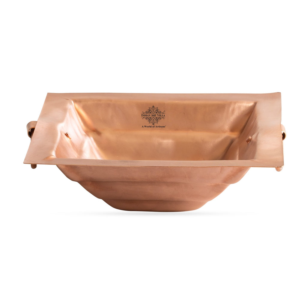 Indian Art Villa Pure Copper Hawan Kund With Handle On Both Side, For Yagya, Hawan & Poojan Purpose