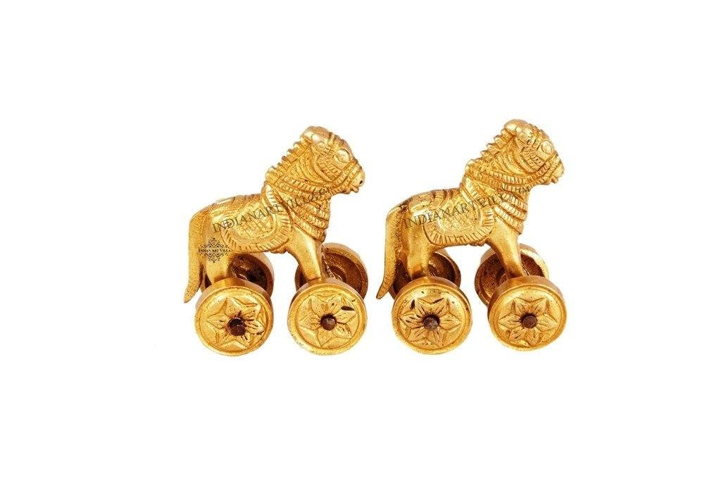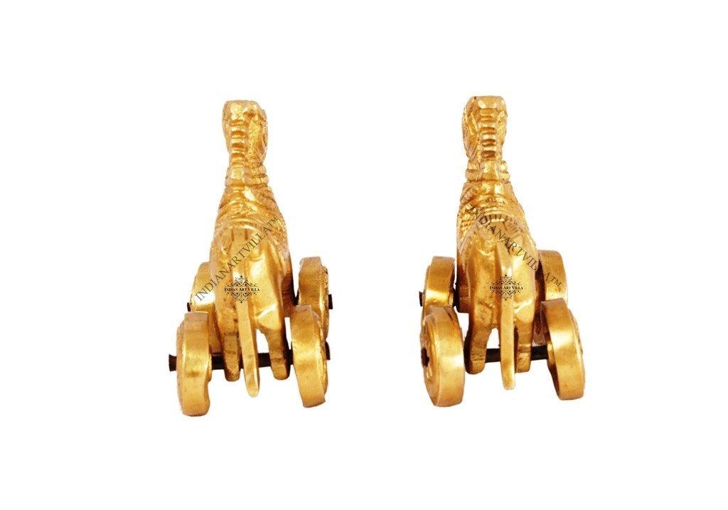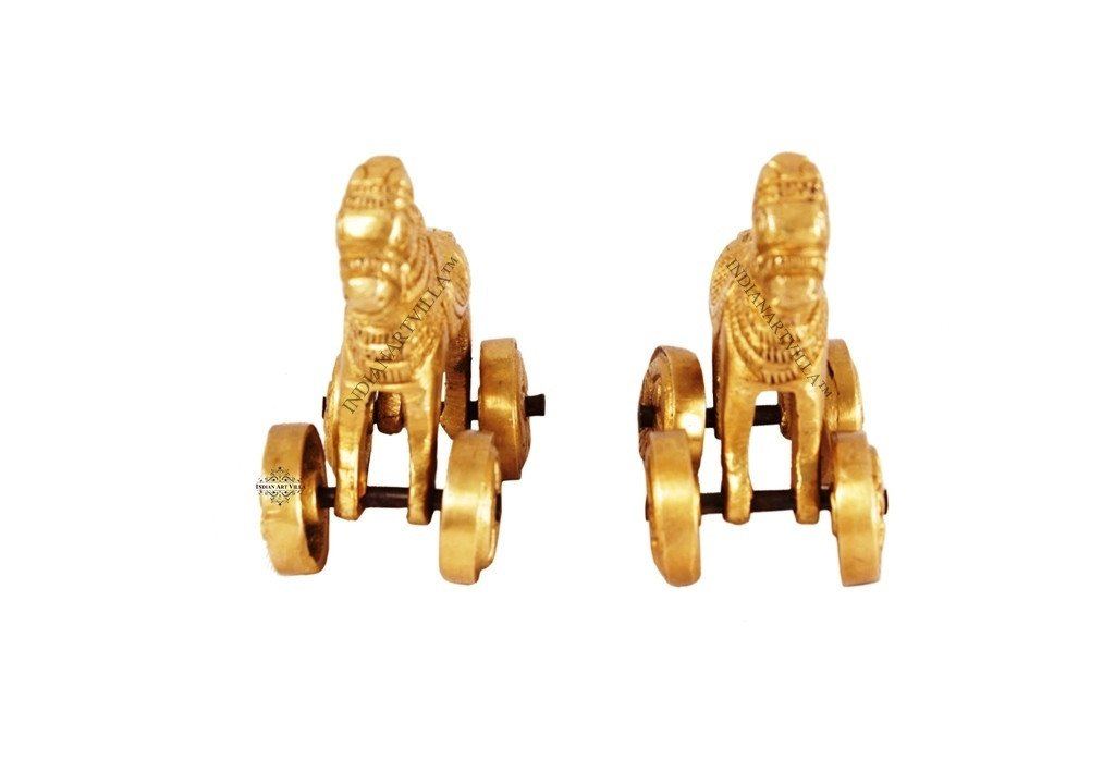 Brass Horse with wheel Pair of 2, Color: Gold, Material: Brass, Weight: 270 Gram, Height: 2.5 inches, Width/Diameter: 2.0" inches