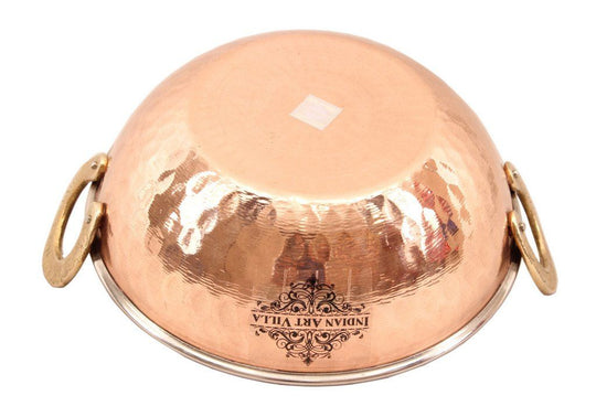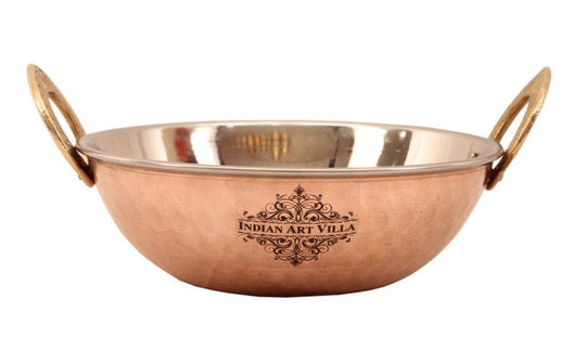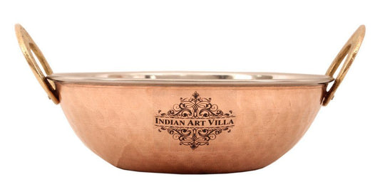 Indian Art Villa Presents Best Quality Pure Hammered Steel Copper Kadhai with a Good capacity, We offer the best affordable prices & Free Shipping PAN India. This Beautiful Pure Hammered Steel Copper Kadhai Kadhai Wok Bowl can be used as a home decor item or it can also be gifted to your near and dear ones. Also, Make your home more lively and cheerful with this brilliant decor piece. Designed to accentuate the beauty and ambiance it brings soothing vibes to your abode and raises its contemporary look manifolds. It is durable and sturdy and with proper cleaning will shine as new every time. This set is One and all you need to have as serveware for your vegetables for dining. These Serving Kadai are used to serve dishes like biryani, Vegetables with/without the gravy, Dal, Curry, etc Also bring them to the table for serving for an Authentic Indian Dining Experience. Serve your Indian Cuisine in this elegant traditional style Serveware. This is a set of centerpiece serve-ware for food. Serve dishes to your friends and family in this unique and ethnic-looking Serveware. With this serving utensil, your dining experience goes several notches up. IndianArtVilla steel copper items have antique designs. The item is highly durable, elegant, and a wonderful addition to your Home Decor.