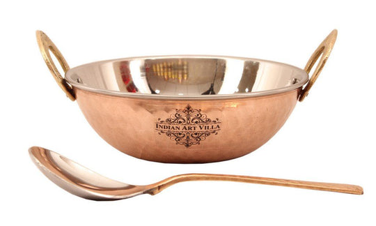 Indian Art Villa Steel Copper 1 Kadai Wok Bowl | 700 ML with 1 Spoon