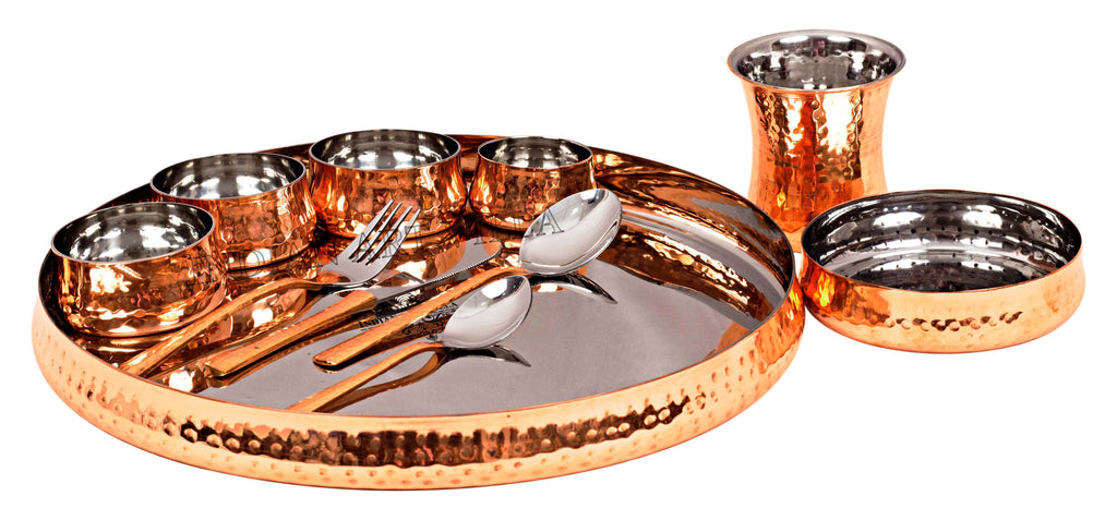 • Order this Pure Steel Copper Hammered Design Curved Dinner Thali Set from Indian Art Villa at Great deals & offers and get a Contactless delivery at your doorstep.