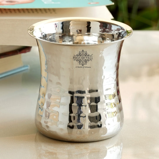 Indian Art Villa Presents Best Quality Pure Steel Hammered Design Curved Glass with a capacity of 280 ml. We offer best affordable prices & Free Shipping PAN India.This Beautiful Pure Steel Hammered Design Curved Glass With Half Lecquer Hammer Design Tumbler Cup can be used as a home decor item or they can also be gifted to your near and dear ones. Also, Make your home more lively and cheerful with this brilliant decor piece. Designed to accentuate the beauty and ambiance it brings soothing vibes to your abode and raises its contemporary look manifolds. It is sheer elegance and contemporary in look. It is durable and sturdy and with proper cleaning will shine as new every time. Indian Art Villa Steel items have antique designs. The item is highly durable, elegant, and a wonderful addition to your Home Decor.