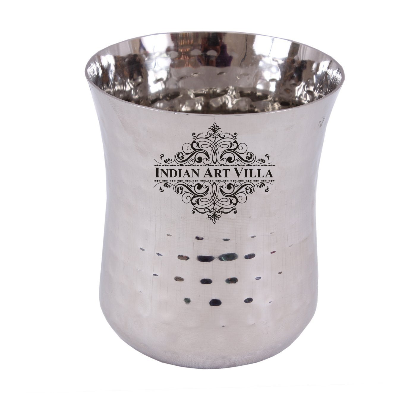Indian Art Villa Stainless Steel Hammered Glass Tumbler Cup 11 Oz