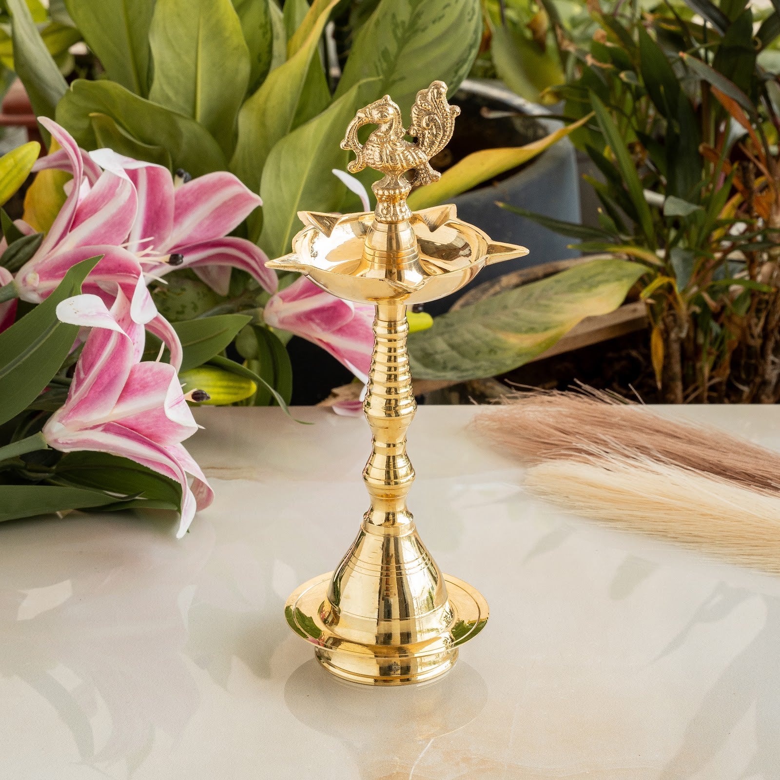 Brass Stand Pillar Diya With Kerala+Murga Design With Fine Quality