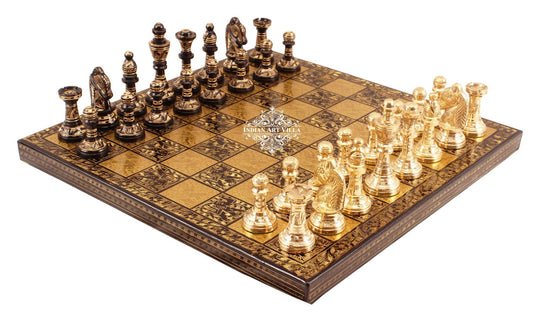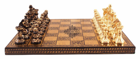 INDIAN ART VILLA Collectible Brass Chess with Pieces (Coffee Brown and Golden)