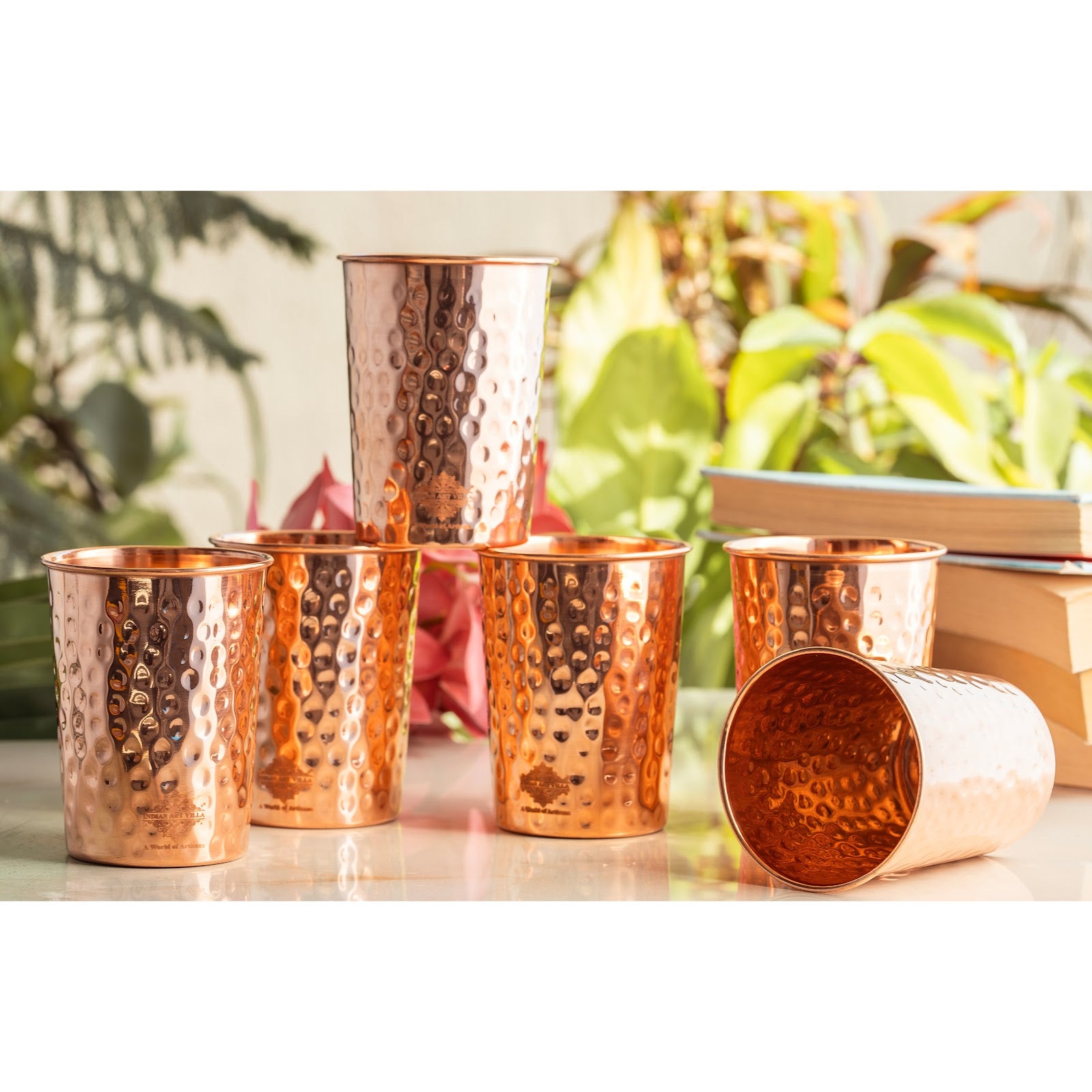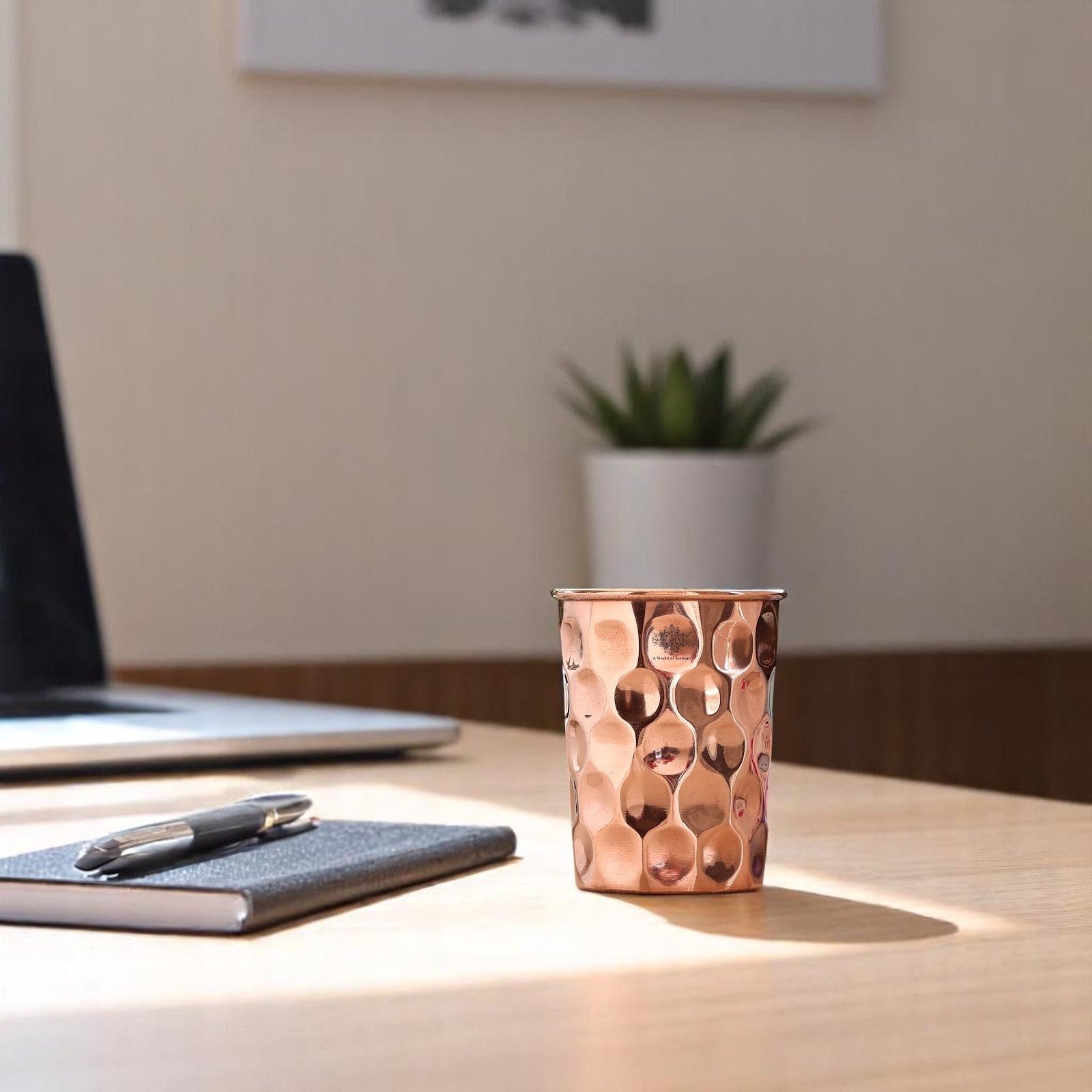 - These Pure Copper Diamond Hammered Design Glass not only have health benefits but also have Trendy looks for better ergonomics. You can add Royal Vintage Look to your Kitchen & Dining by using these Glasses as your Drinkware / Serveware.