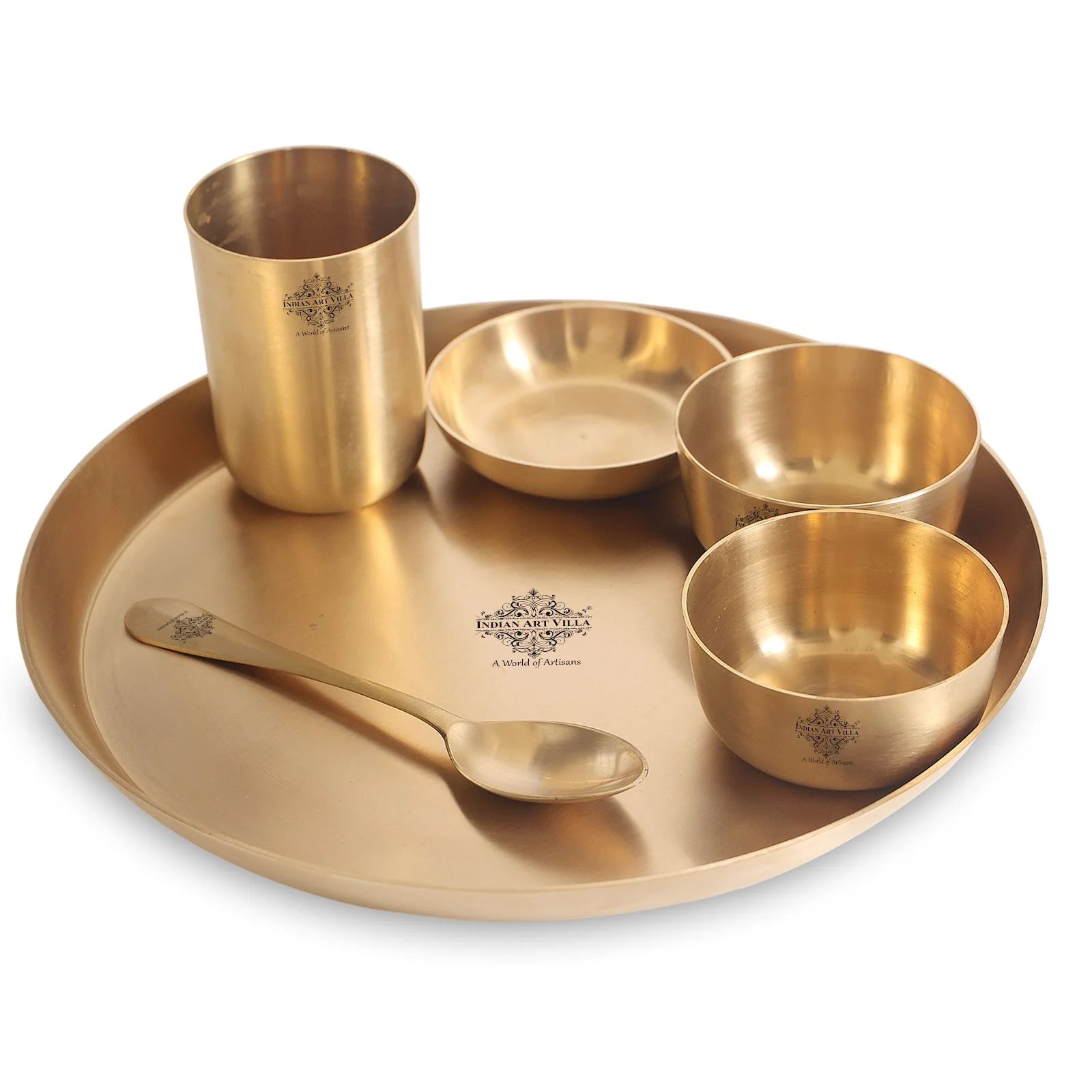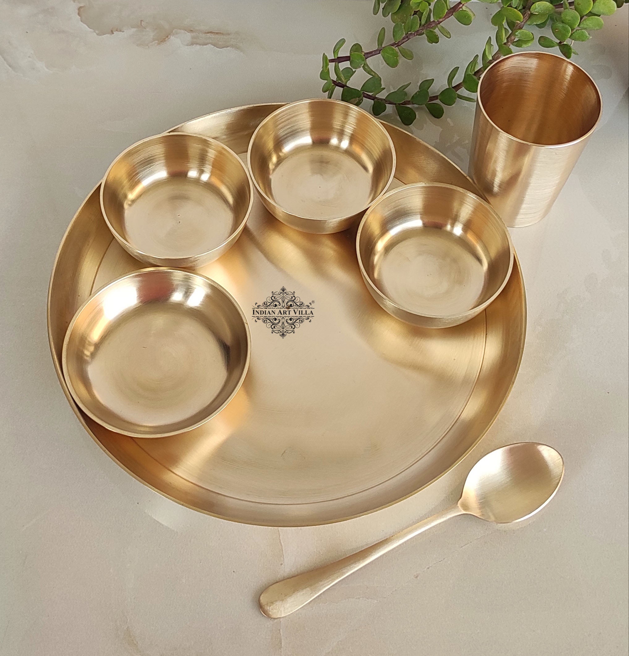 Indian Art Villa Pure Brass Matt Finish 7 Pieces Dinner Set / Thali Set, Dinnerware, Tableware