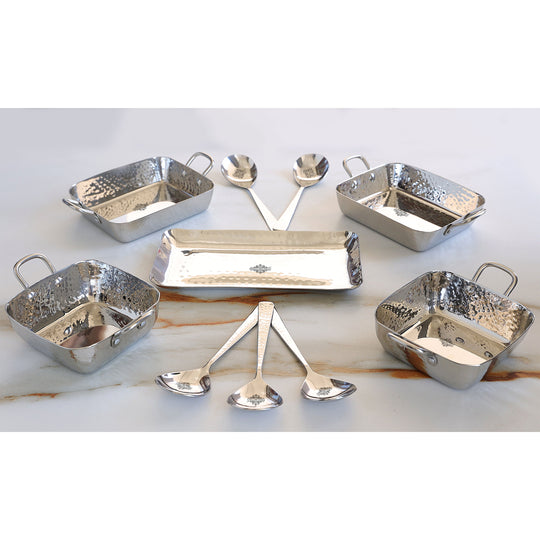 - These Pure Stainless Steel Hammerd Oval & Rectangular shape Serving Set also have Trendy looks for better ergonomics. You can add Royal Vintage Look to your Kitchen & Dining by using these Set as your Dinnerware/Serveware Purpose.