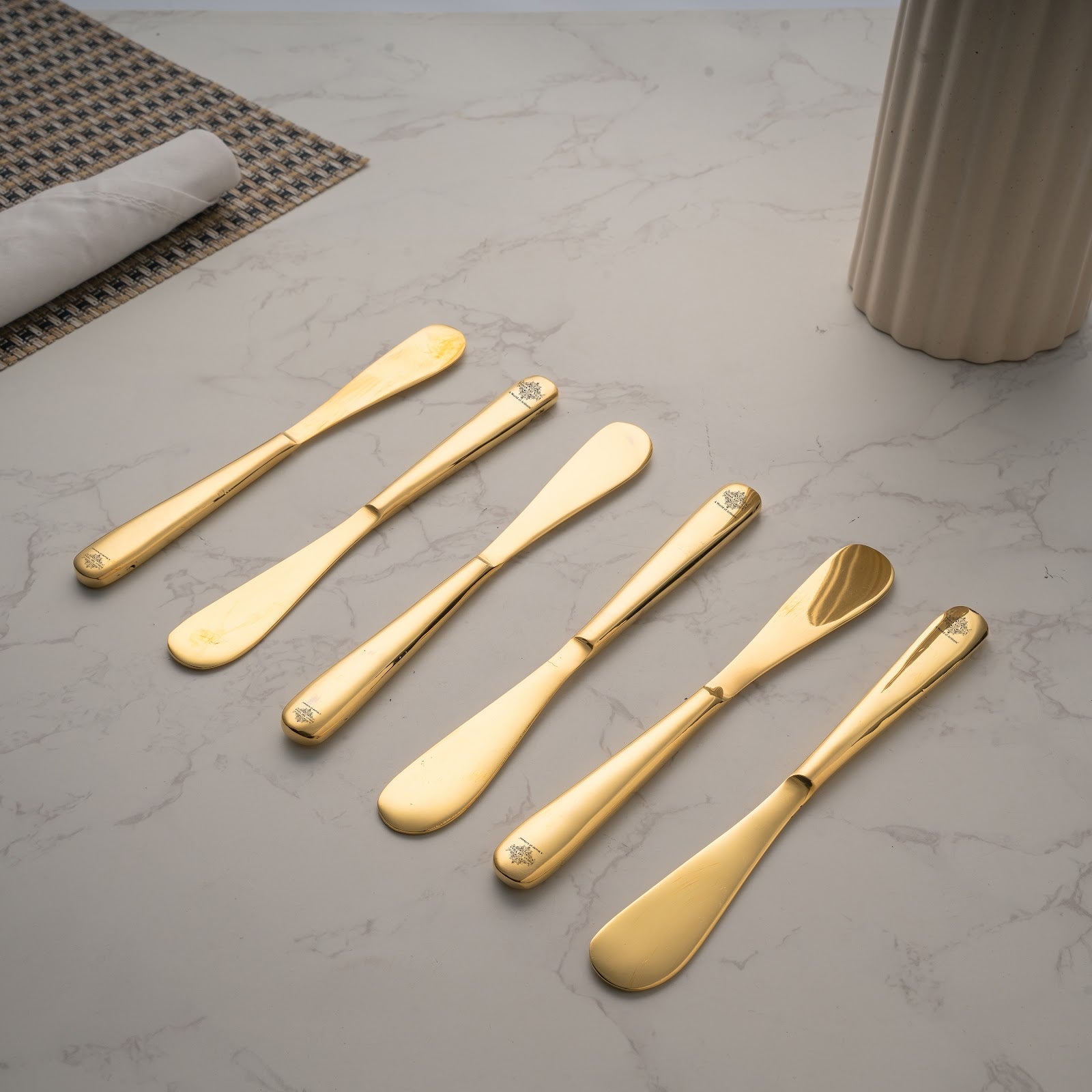 Add a touch of timeless elegance to your dining experience with the Indian Art Villa Brass Butter Knife with Flat Handle Design. Meticulously handcrafted from high-quality brass, this 19 cm knife is designed for effortless spreading of butter, jams, or sauces and can also be used for cutting soft foods with ease. Its smooth, minimalist structure and flat handle ensure a perfect grip, combining functionality with refined style.