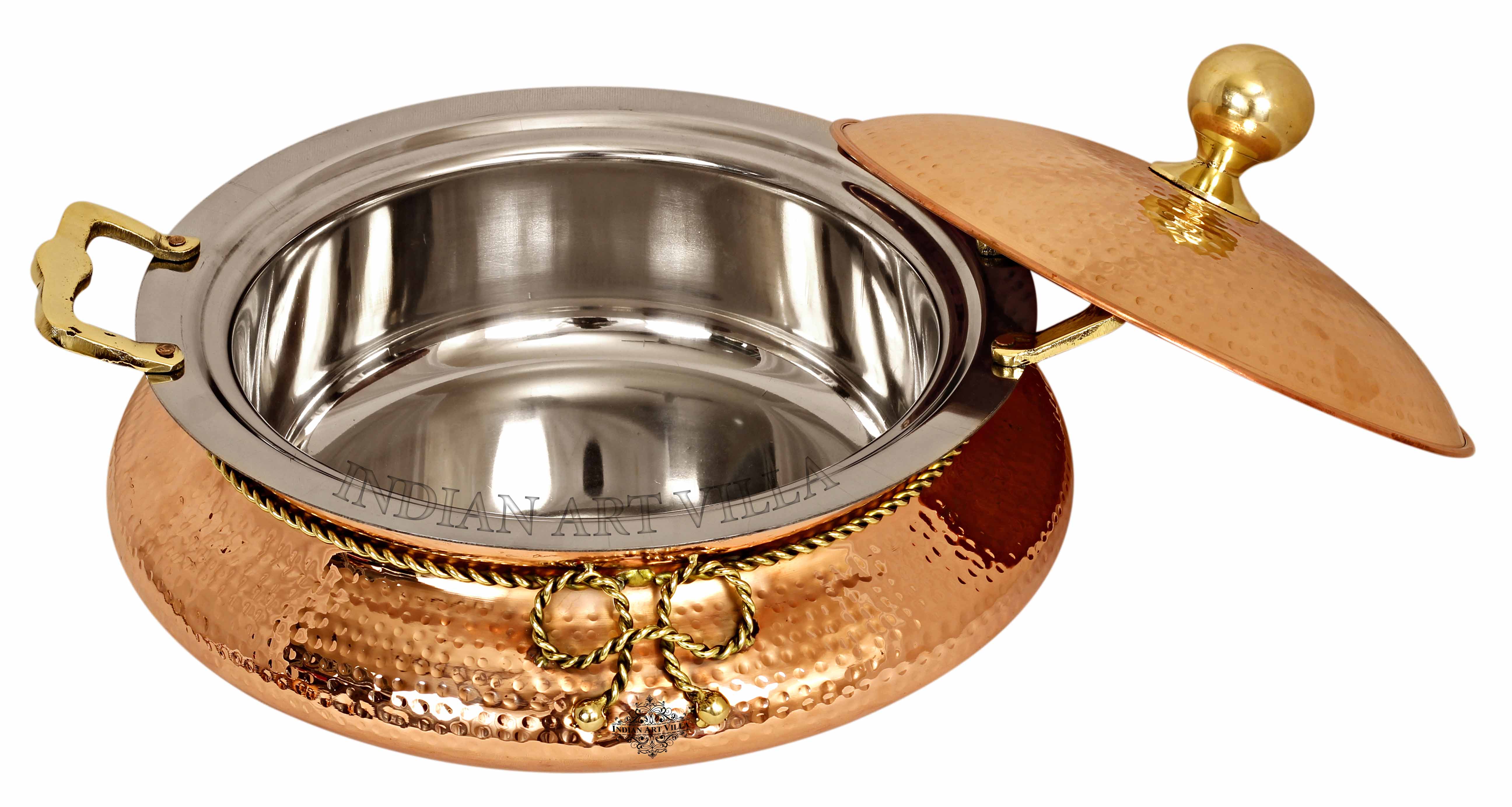 - IndianArtVilla Pure Steel Copper Hammered Chafing Dish, it was almost impossible to find one that came in a design other than the plain one. Indian Art Villa Provide You with different designs to choose from, allowing you to pick your favorite design or collect them all for those who want a variety of options.
