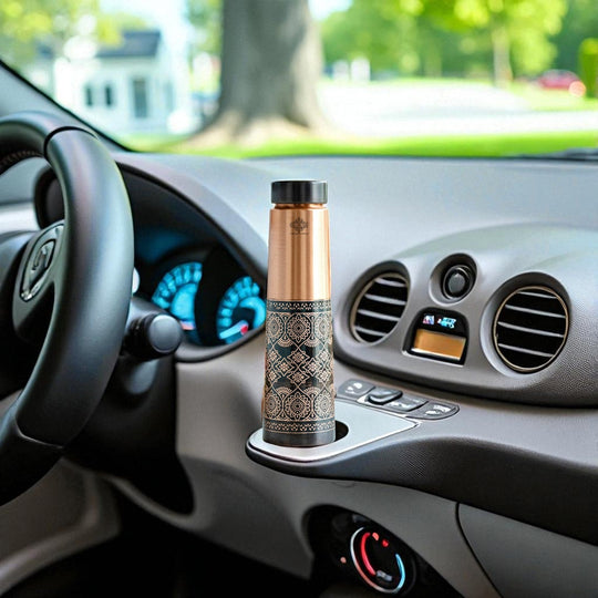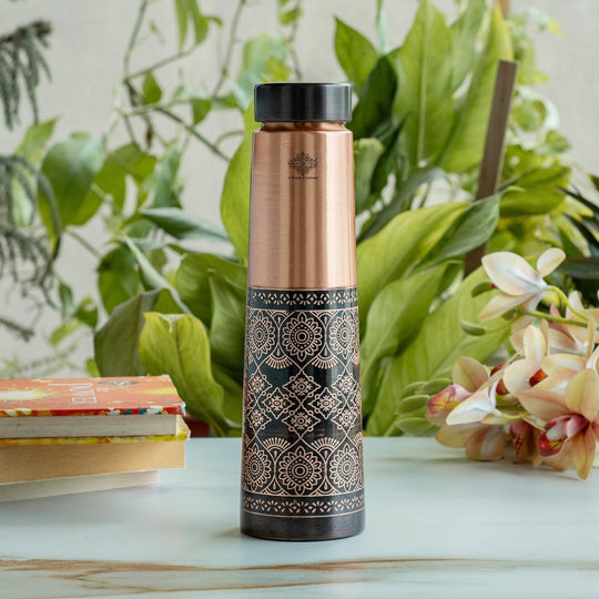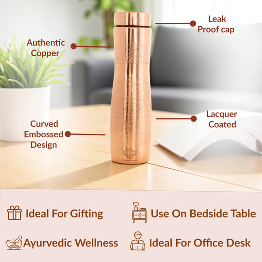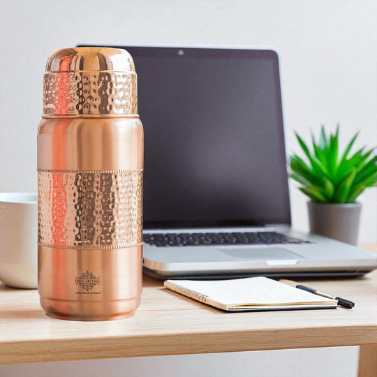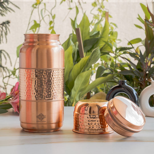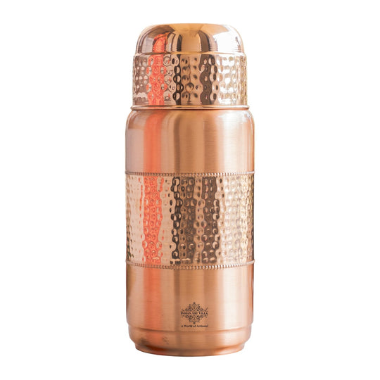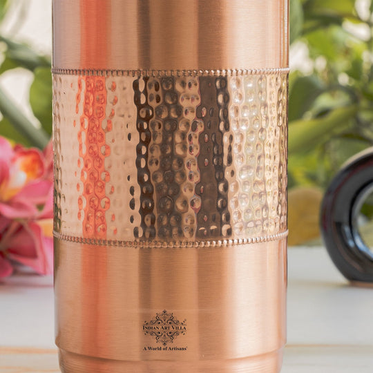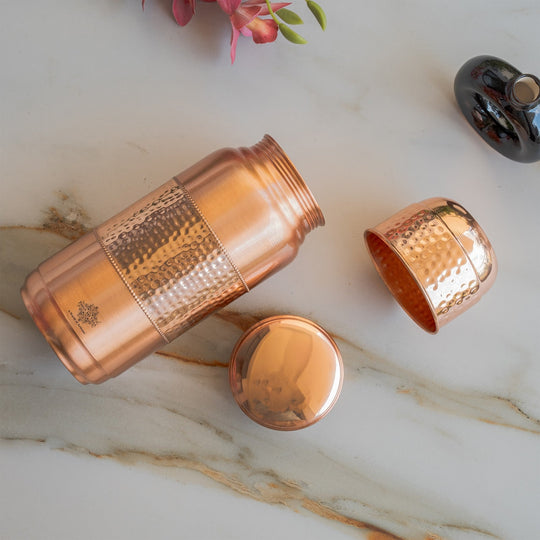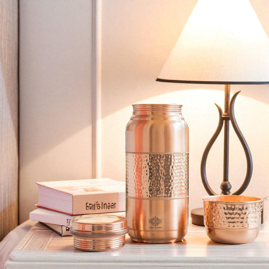 Pure Copper Hammered Silk Finish Bedroom Bottle with Inbuilt Glass