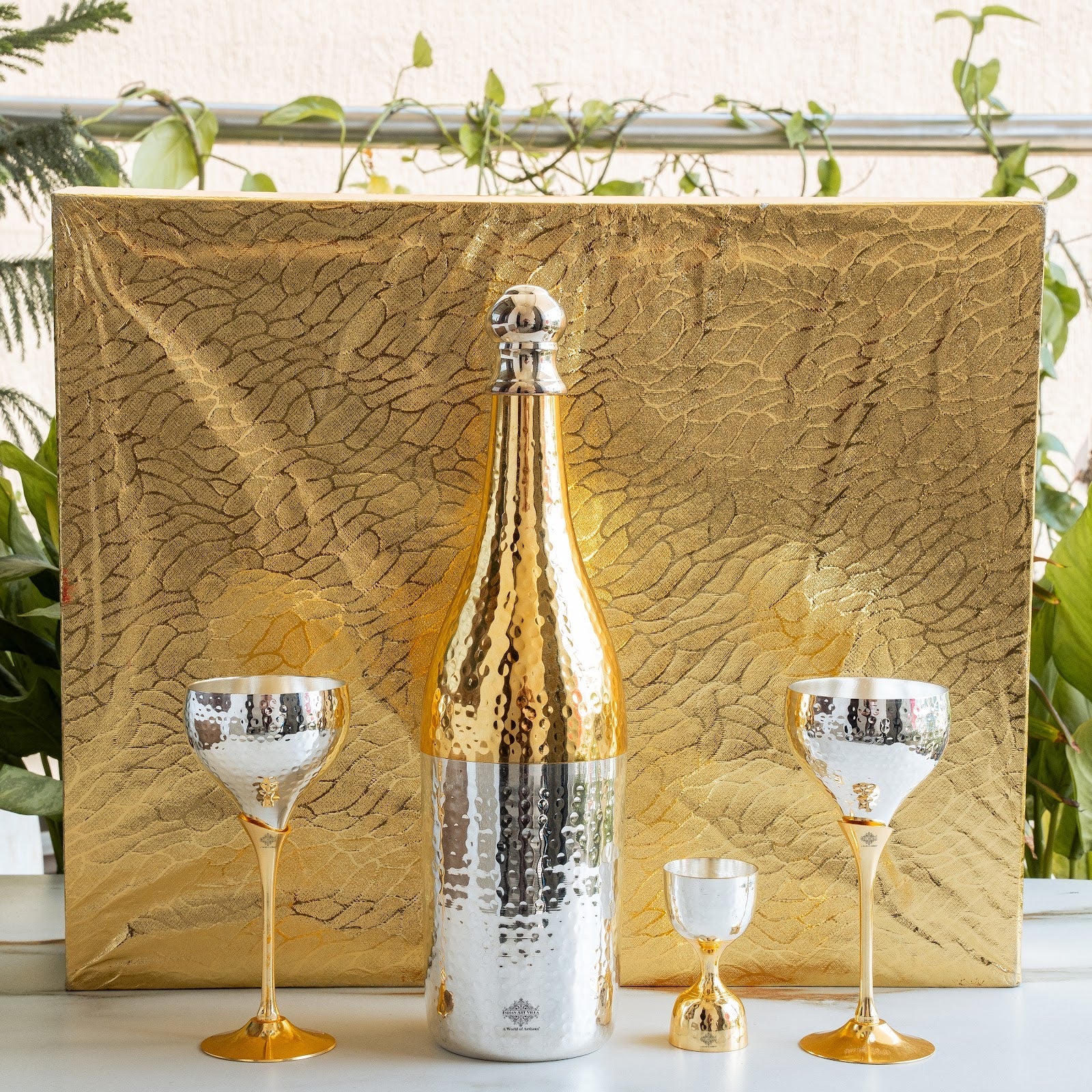 • Order this Silver & Gold Plated Champagne Bottle, 2 Wine Glass & Peg Measure from Indian Art Villa at Great deals & offers and get a Contactless delivery at your doorstep.