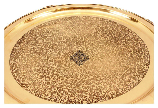 Indian Art Villa Brass Embossed Design Big Jumbo Plate