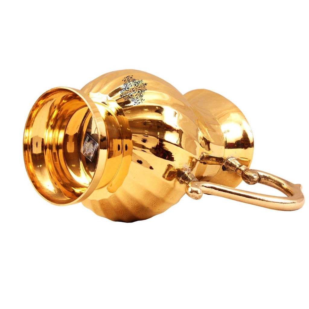 IndianArtVilla Brass Handmade Lining Design Jug Pitcher Serving Water, 33.81 Oz