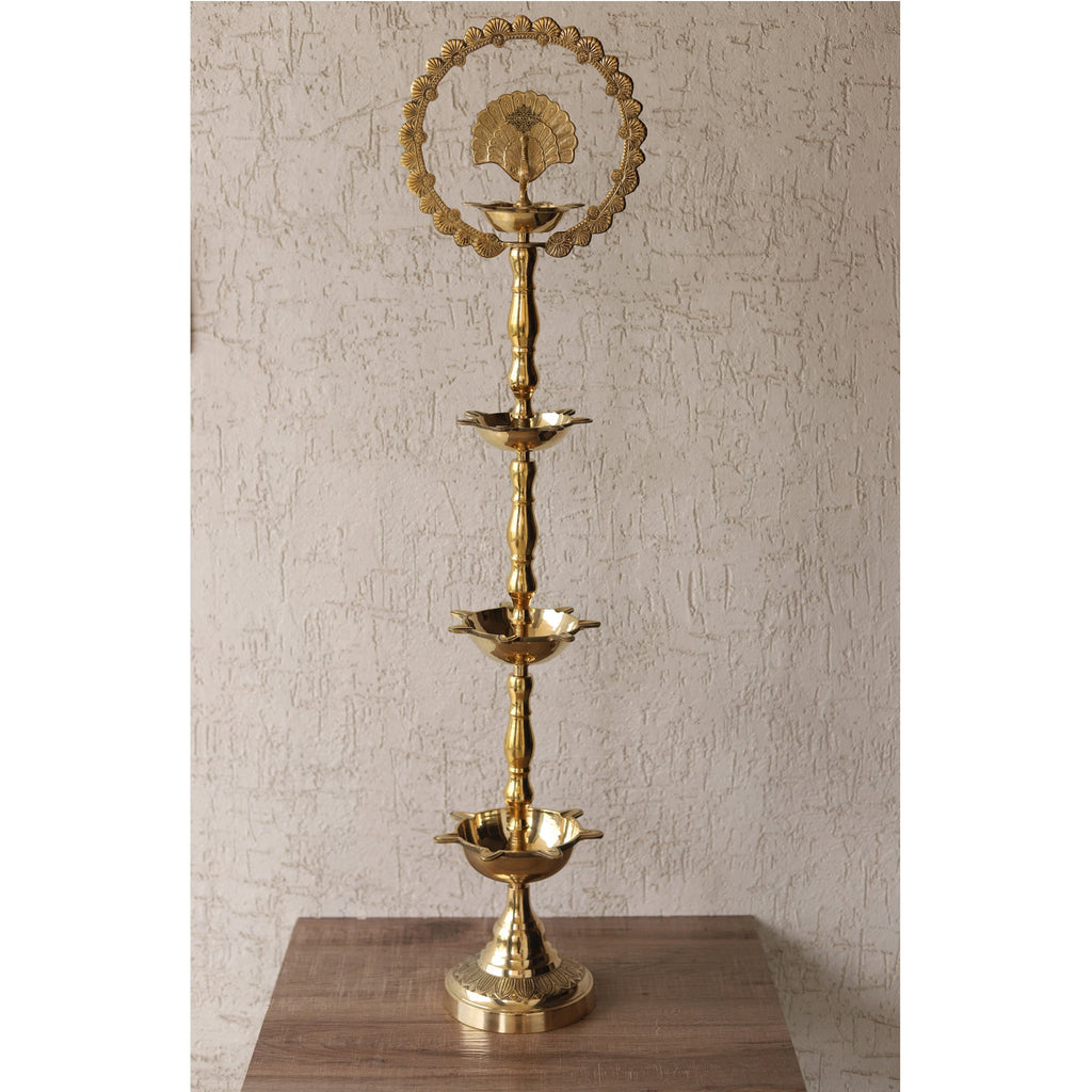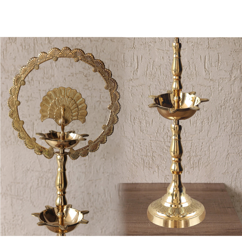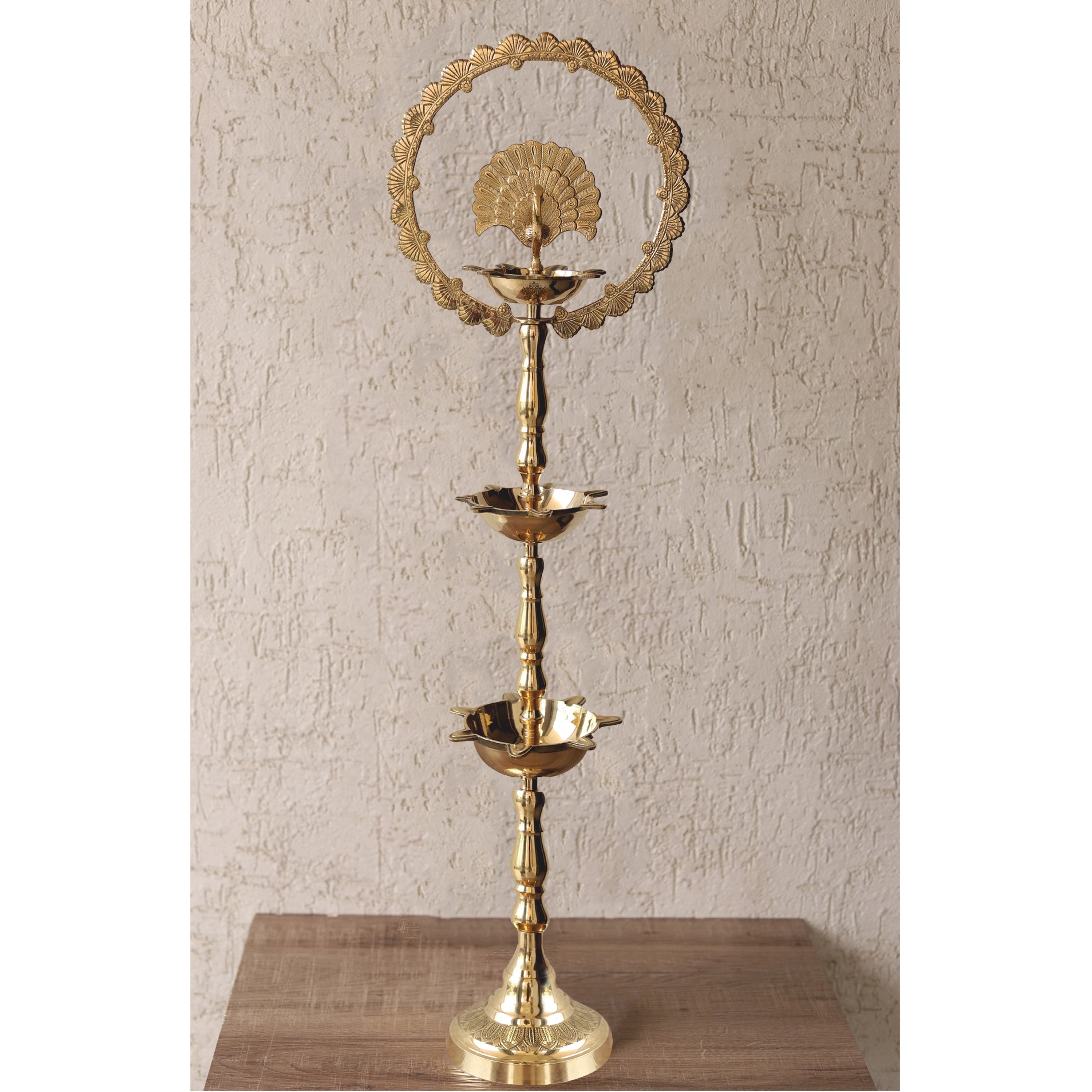 Indian Art Villa Brass Peacock Top Diya Oil Lamp Stand Diya