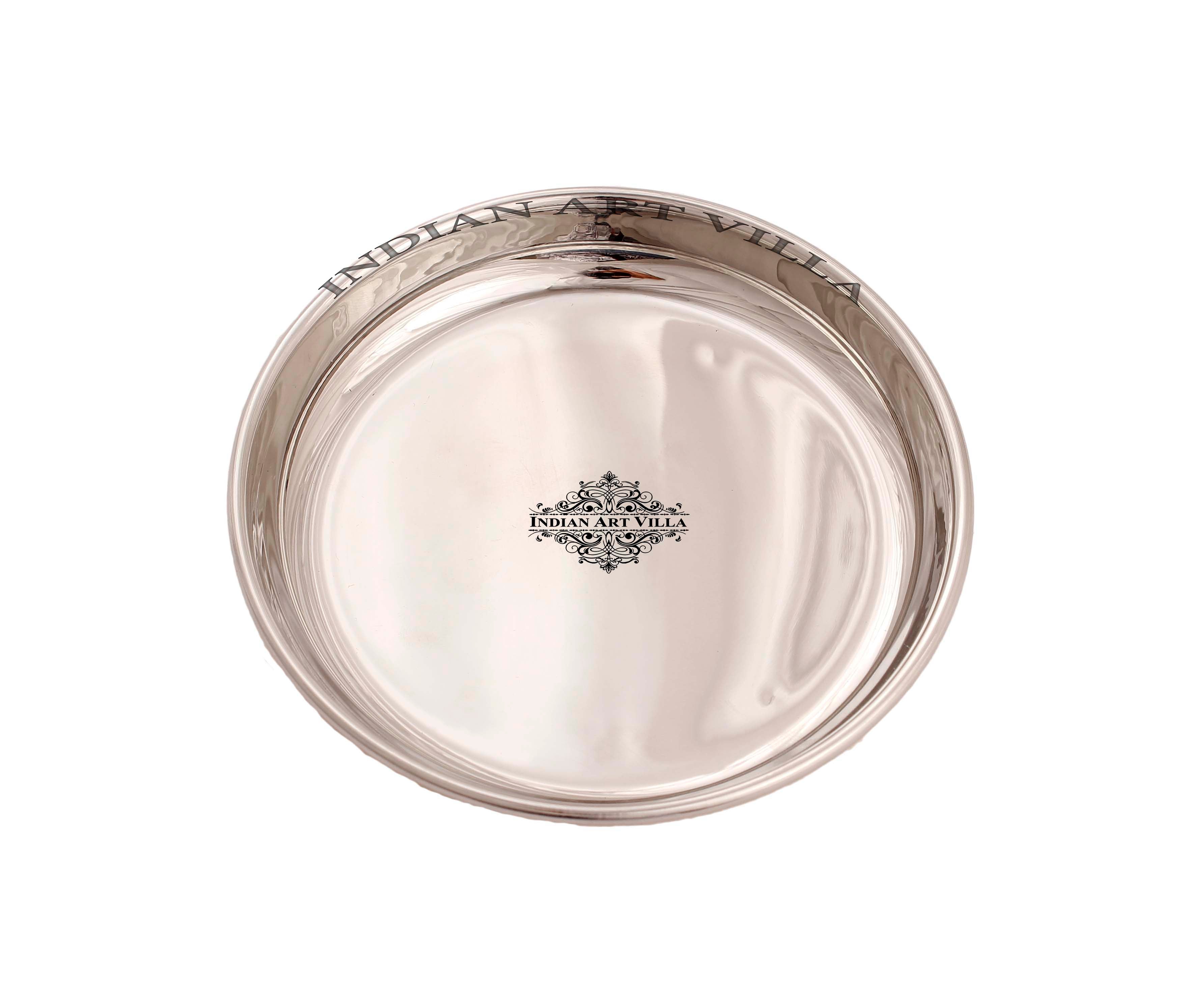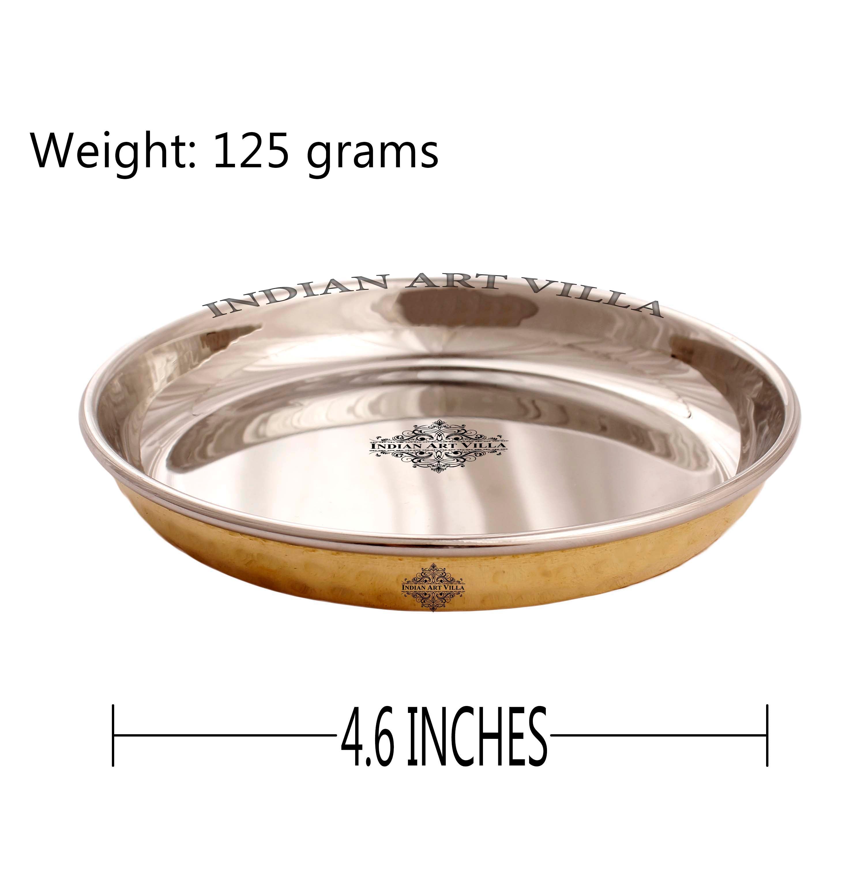Indian Art Villa Brass Steel Rice Plates exemplify elegance and functionality in dining essentials. Crafted with precision and care, these plates seamlessly blend the timeless charm of brass with the durability of stainless steel, resulting in a versatile and aesthetically pleasing addition to any table setting. Each plate features a sleek and modern design, combining smooth stainless steel with elegant brass accents. The contrast between the two materials adds visual interest and sophistication to the plates, making them suitable for both everyday dining and special occasions. With a size tailored for serving individual portions of rice or other dishes, these plates cater to various serving needs with ease. Whether used for serving traditional Indian meals or international cuisines, they offer a versatile platform for presenting a wide range of dishes.