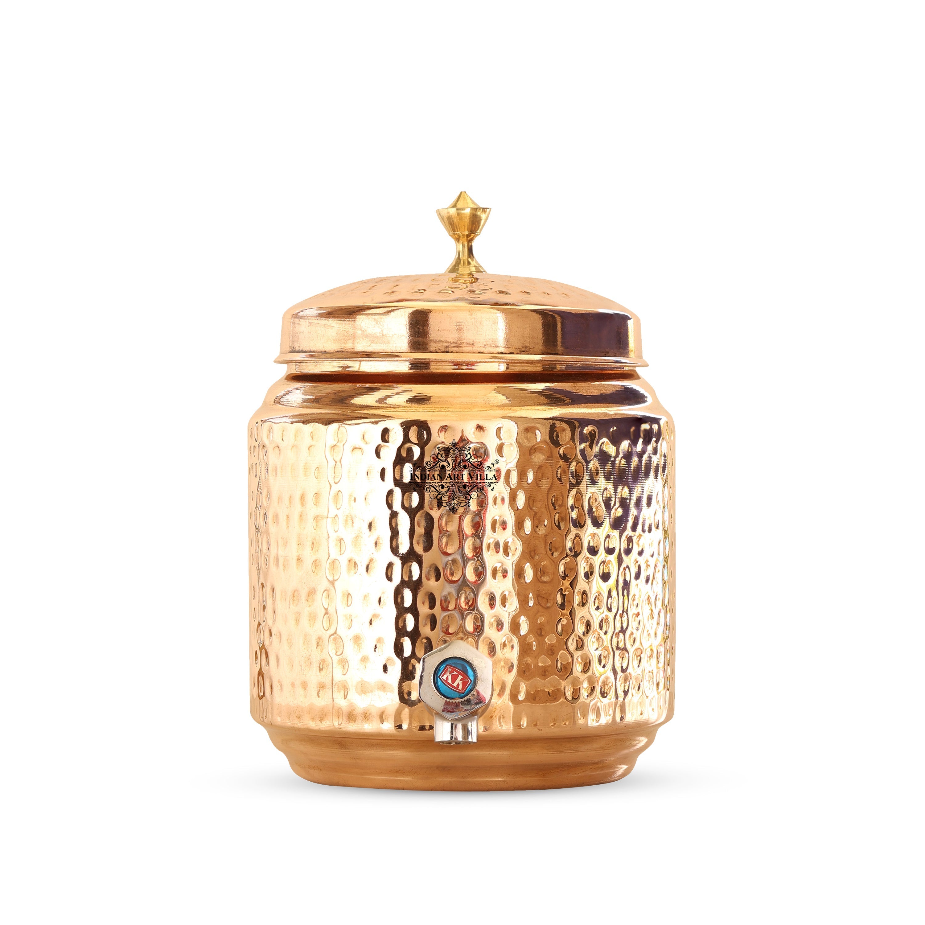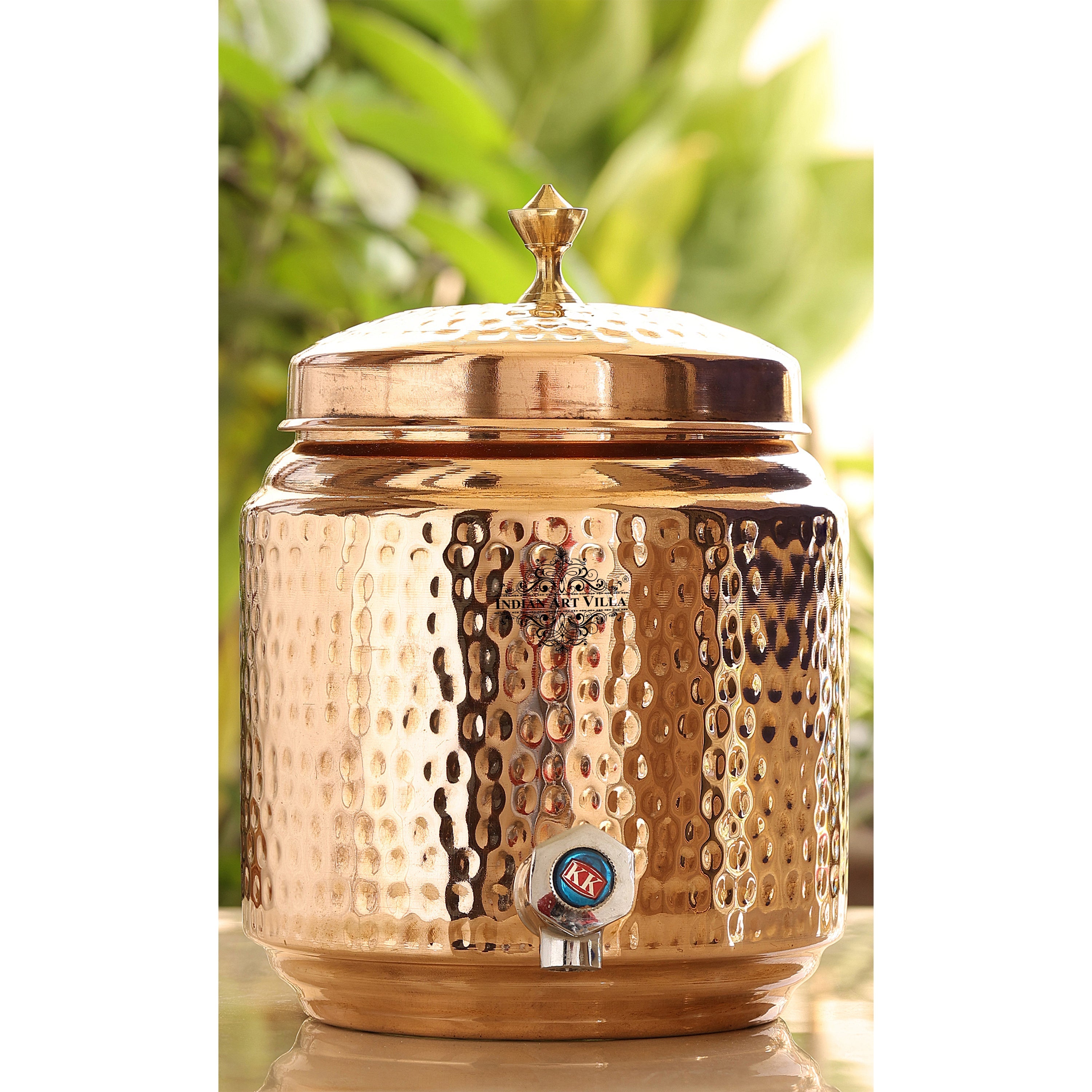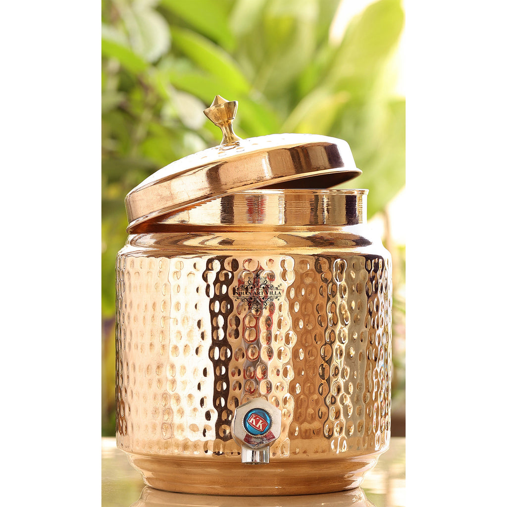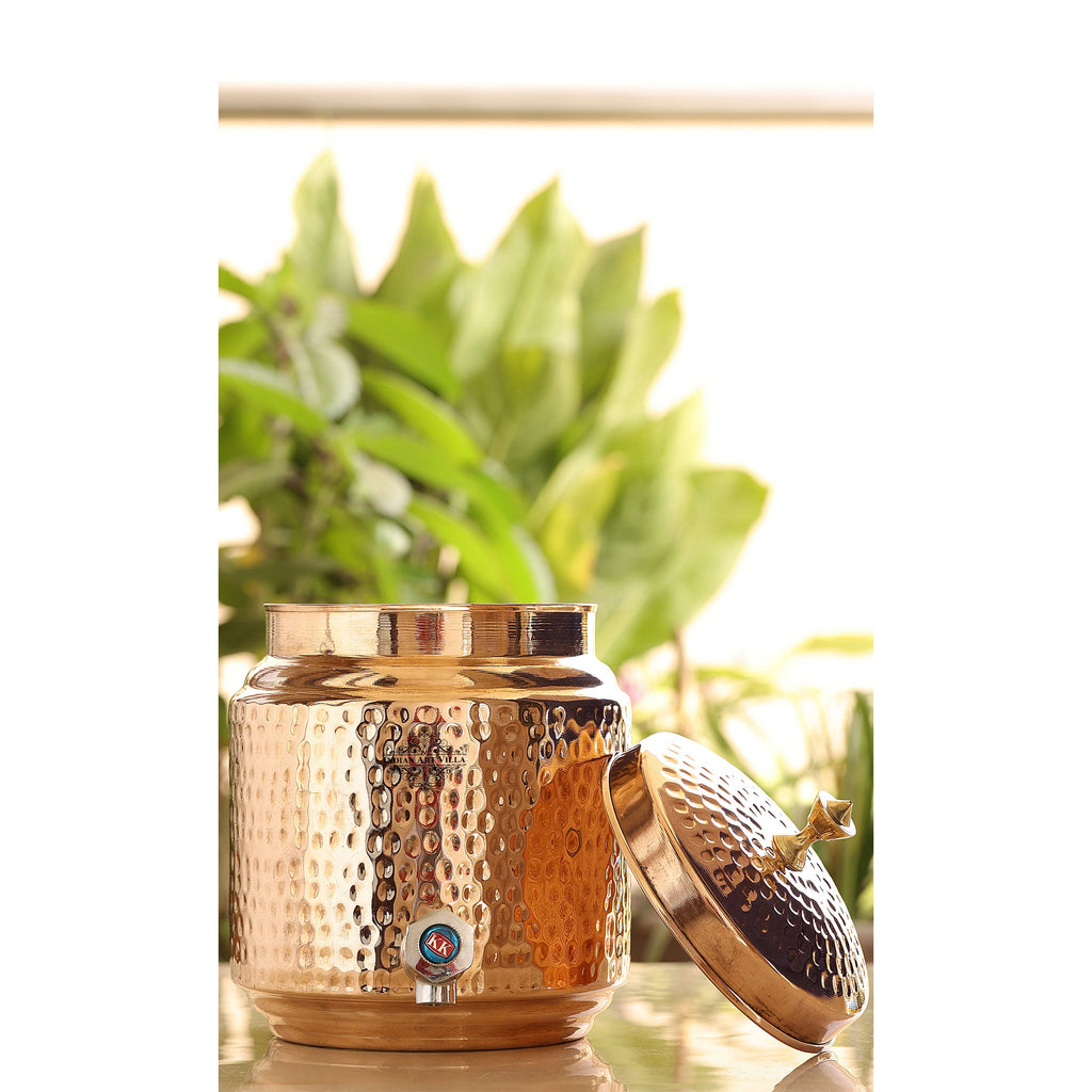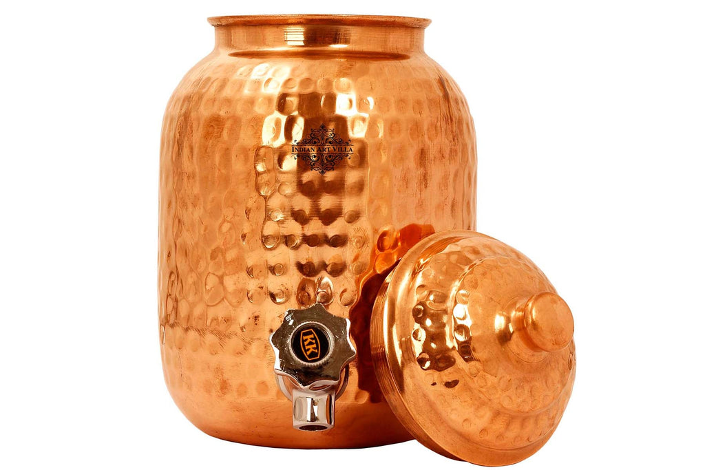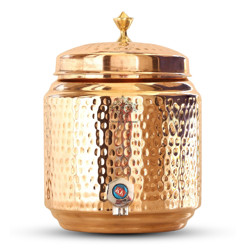 Indian Art Villa Pure Copper Hammered Joint-Free Water Pot, Pure Copper Water Dispenser, Durable Design with Lid and Tap, Ideal for Home, Office, and Gifting