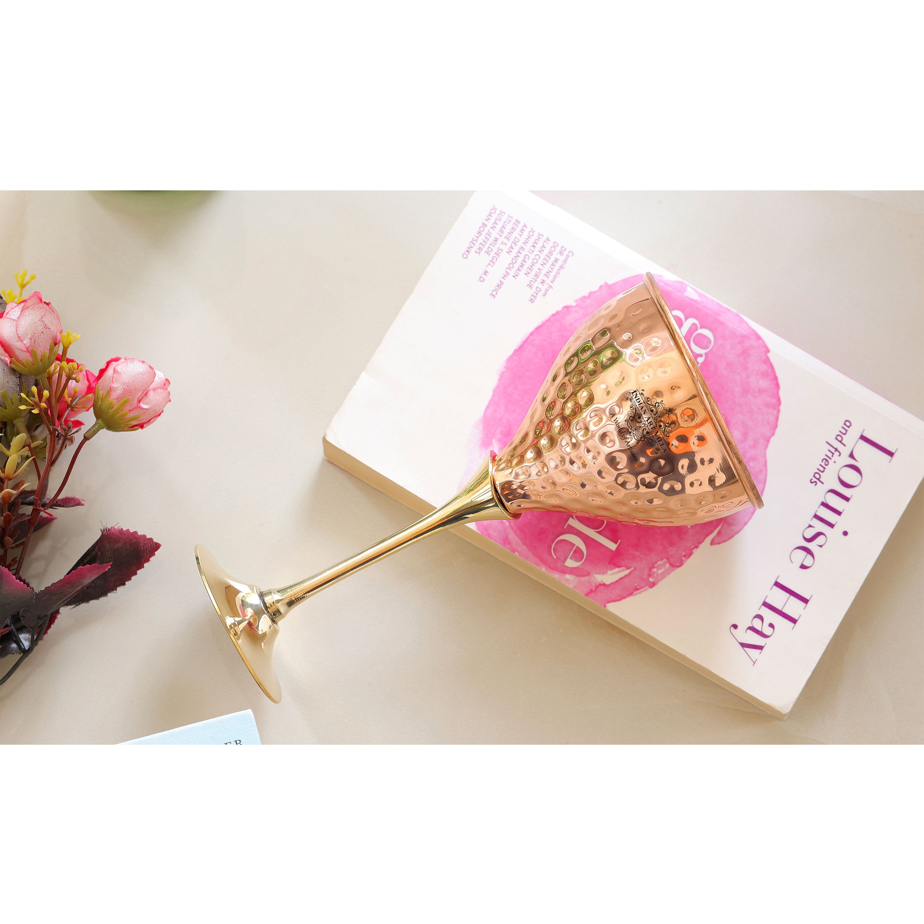 Indian Art Villa Pure Copper Hammered Wine Glass with Brass Stand 11 Oz