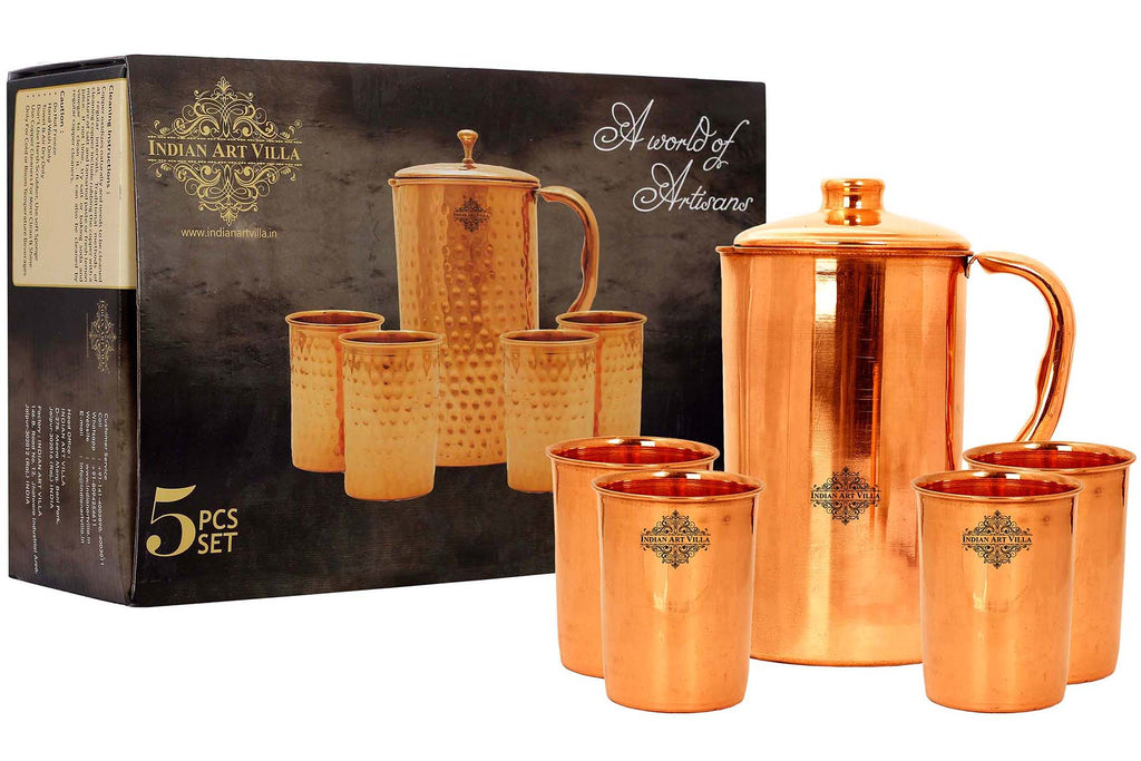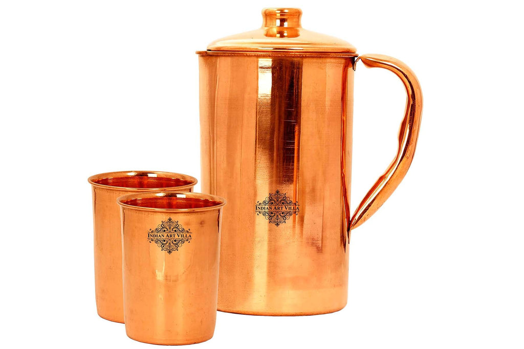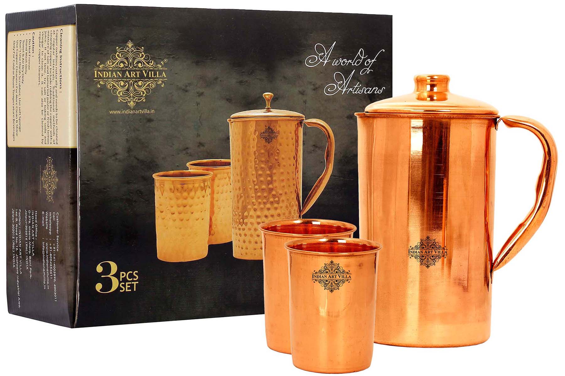 - Indian Art Villa Pure Copper Plain Design Jug With Glass Gift Set, it was almost impossible to find one that came in a design other than the plain one. Indian Art Villa Provide You with different designs to choose from, allowing you to pick your favorite design or collect them all for those who want a variety of options.
