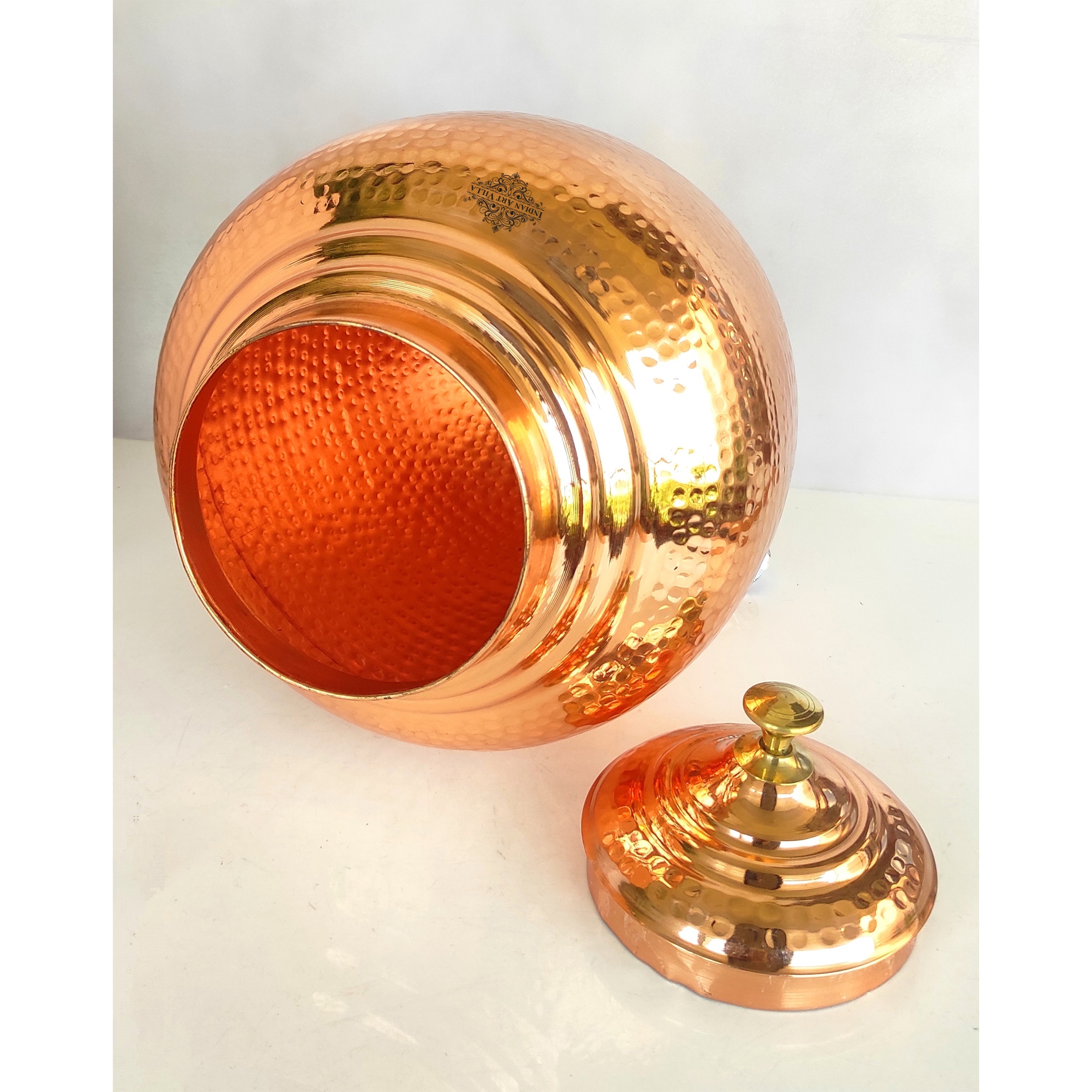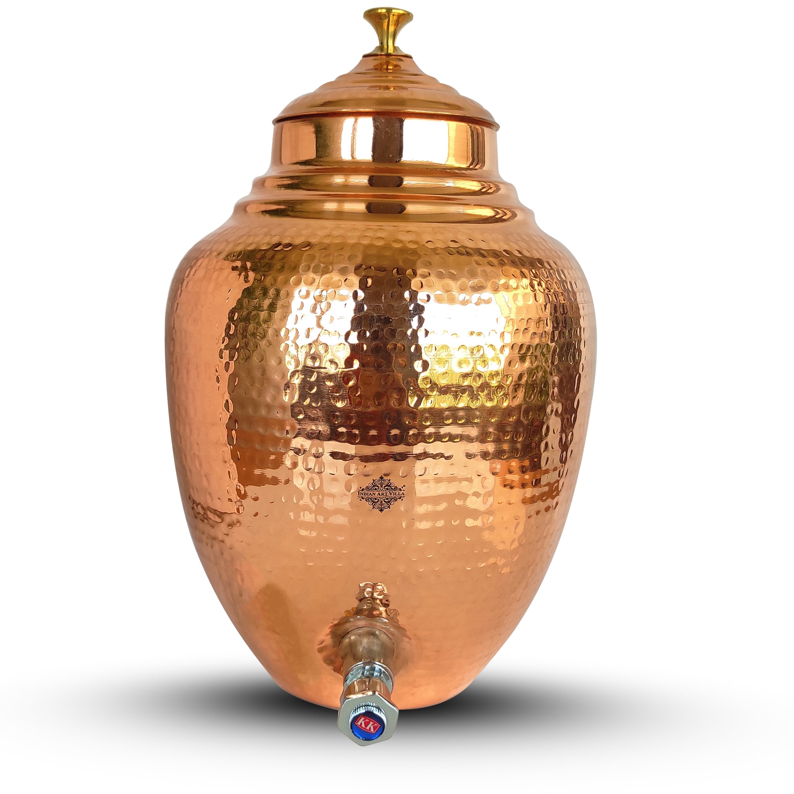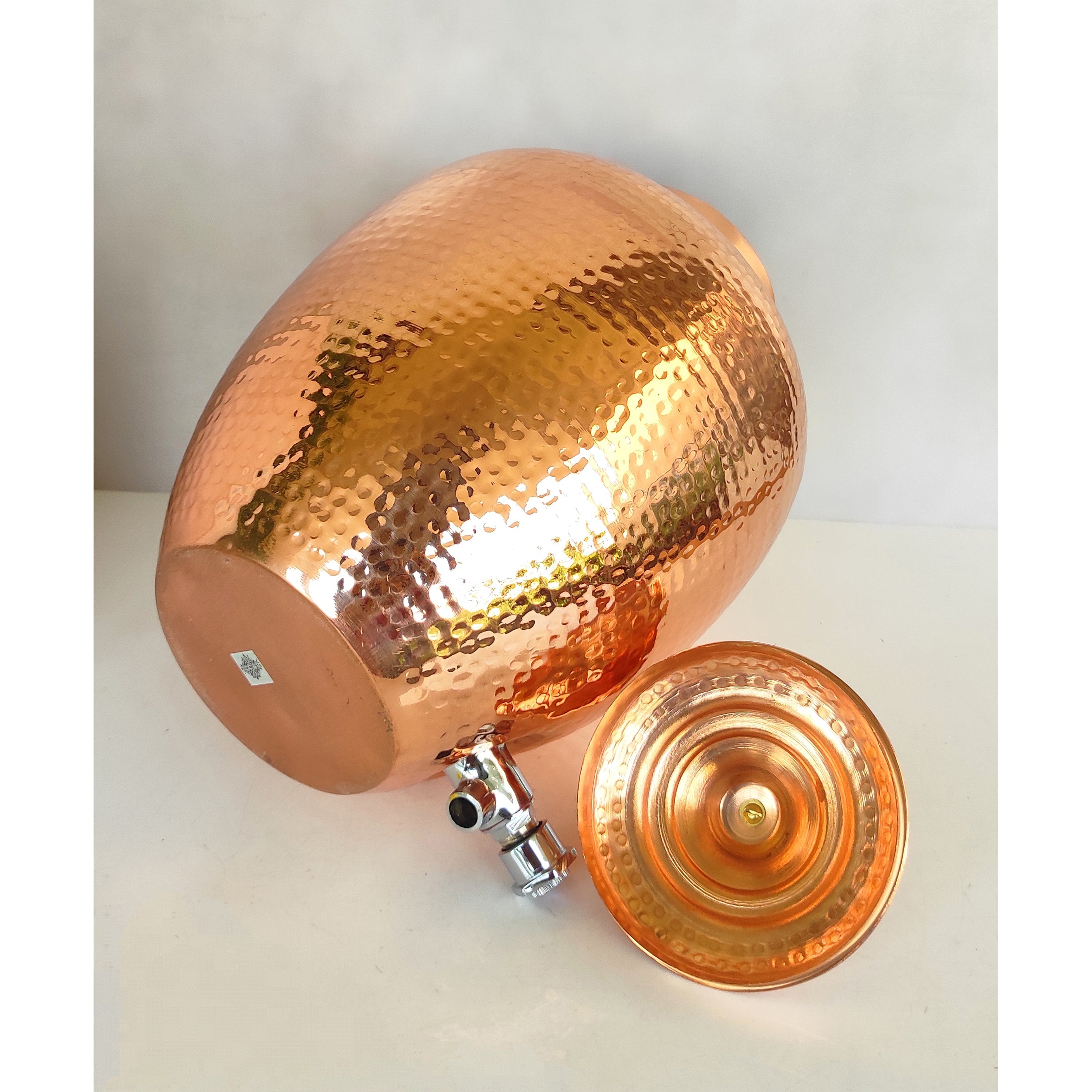Indian Art Villa Hammered Design Copper Water Dispenser Pot Matka, Storage, Home Kitchen Garden, Volume-8.5 Ltrs