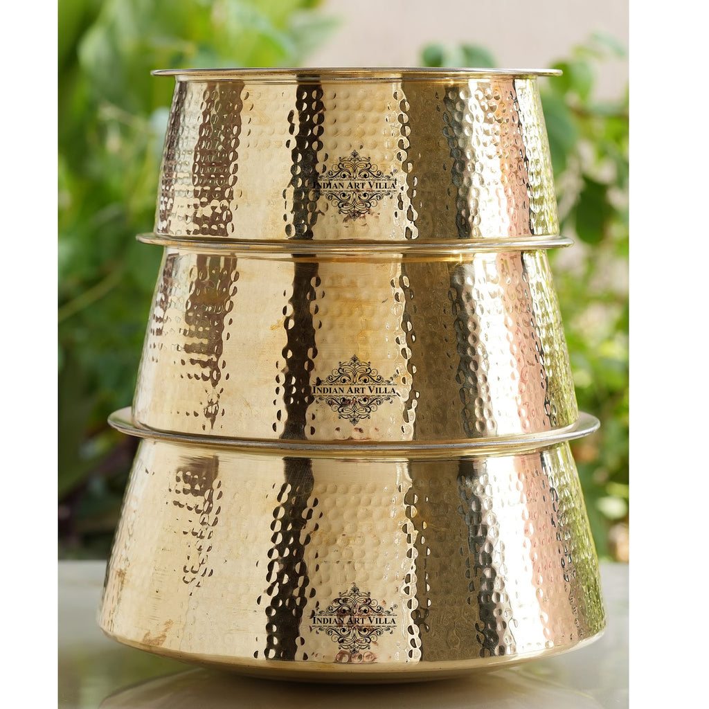 The Indian Art Villa Brings Handcrafted Bhagona/Patila Pure Brass Construction with Tin Lining. We also offer Easy return & Exchanges, T&C Applied.Meticulously crafted by skilled artisans, each piece embodies centuries of Indian culinary tradition and exquisite artistry. Constructed from pure brass, these Bhagonas/Patilas are not just cooking vessels but a testament to durability, conductivity, and timeless elegance. Our brass core ensures superior heat distribution, allowing for even cooking and precise temperature control. Also protective tin lining, meticulously applied to the interior surface. This tin lining serves a dual purpose, enhancing both cooking performance and food safety and the non-reactive nature of tin prevents any interaction between acidic ingredients and the brass, preserving the integrity of flavors and nutrients in your dishes. Available in three convenient sizes-these Bhagonas/Patilas cater to diverse culinary needs, whether you're cooking for a cozy family dinner or a festive gathering. Indulge in the rich heritage of Indian cooking with the Indian Art Villa Handcrafted Bhagona/Patila by adding a touch of tradition and elegance to your kitchen.
