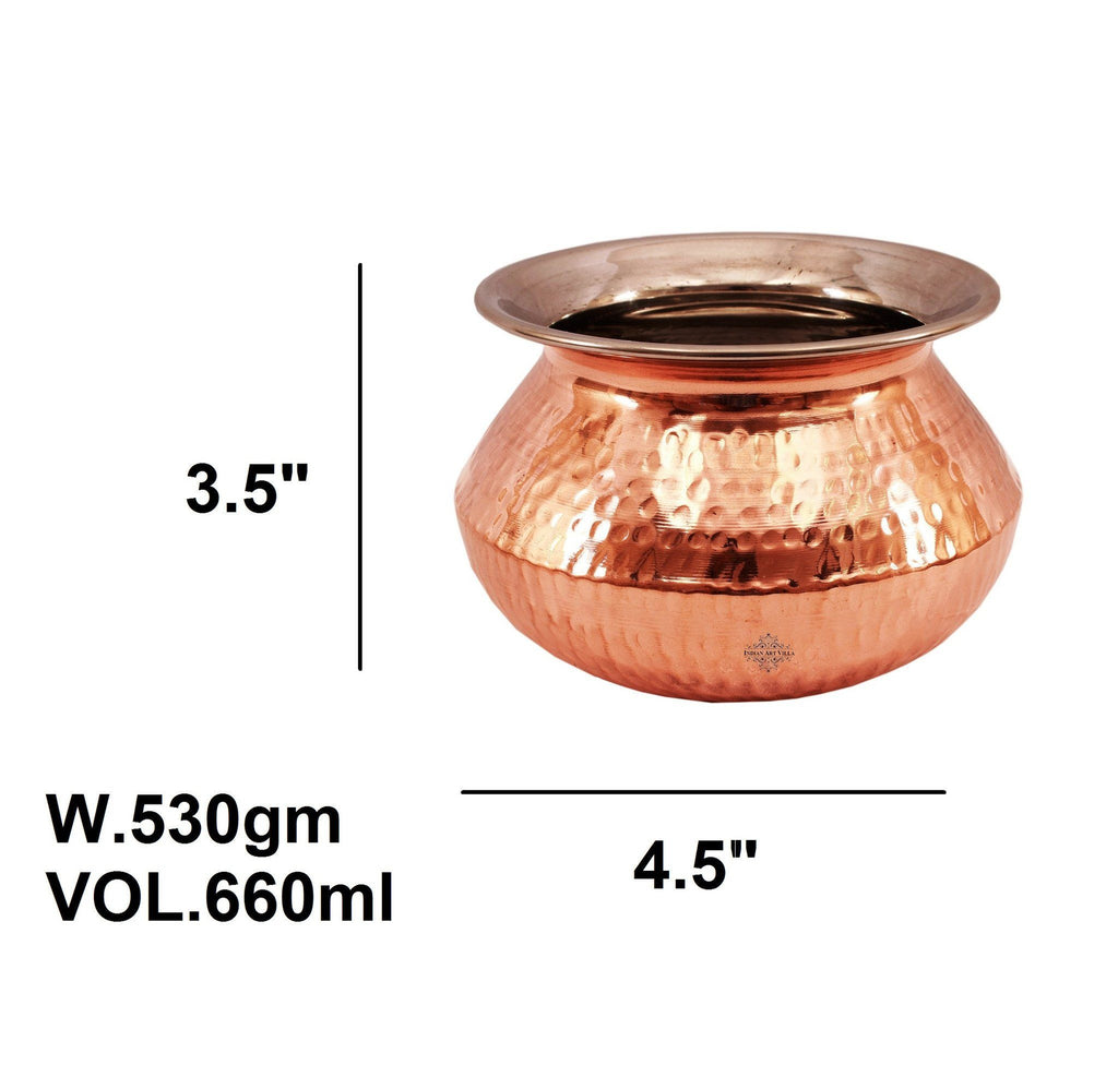 Indian Art Villa Handmade Pure Steel Copper Hammered Design Punjabi Handi No. 1, Volume-15.21 Oz