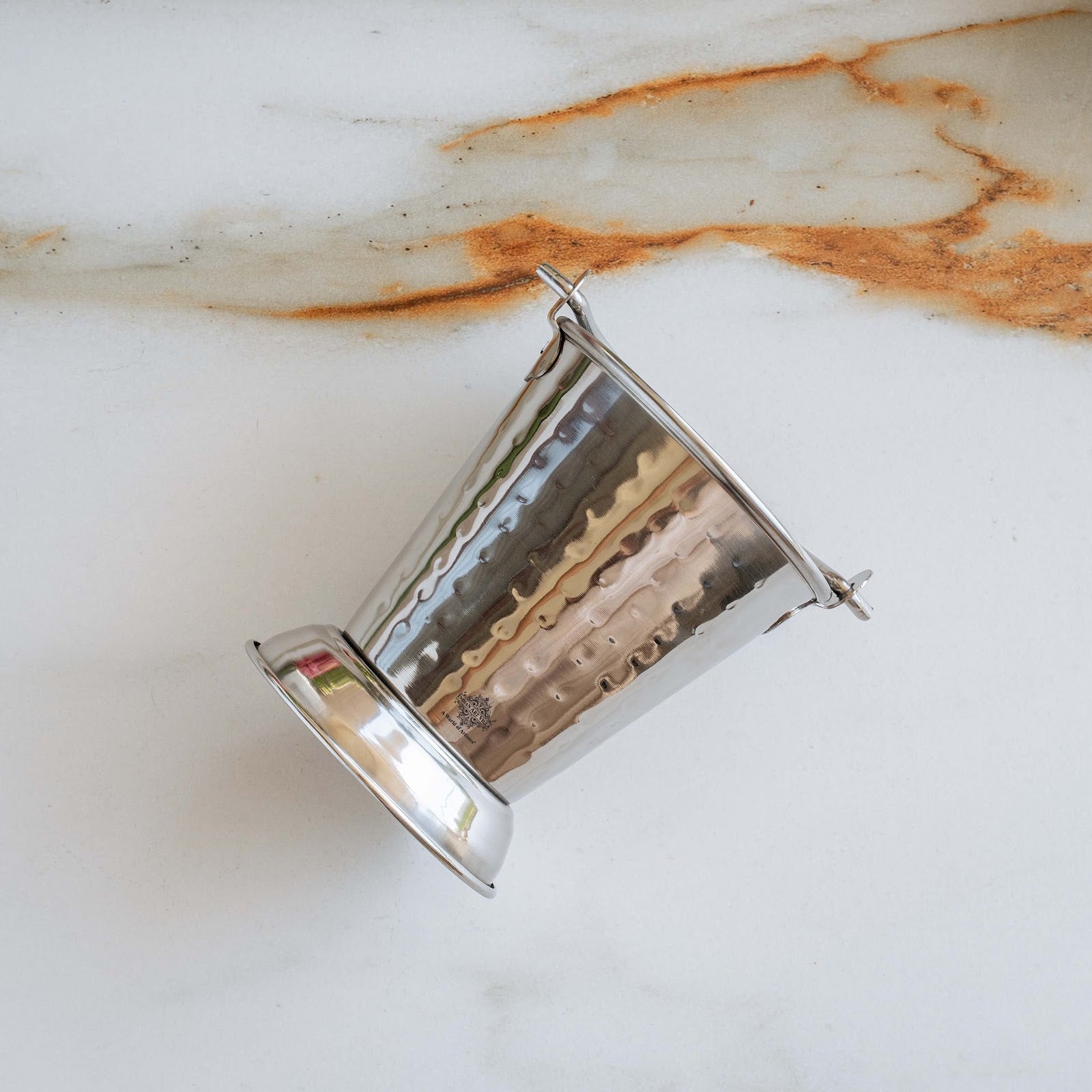 Indian Art Villa Presents Best Quality Pure Hammered Steel Serving Bucket with a capacity of 350ml. We offer the best affordable prices & Free Shipping PAN India. This Beautiful Pure Hammered Steel Serving Bucket can be used as a home décor item or they can also be gifted to your near and dear ones. Also, Make your home more lively and cheerful with this brilliant décor piece. Designed to accentuate the beauty and ambiance it brings soothing vibes to your abode and raises its contemporary look manifolds. It is sheer elegance and contemporary in look. It is durable and sturdy and with proper cleaning will shine as new every time. Indian Art Villa Steel items have antique designs. The item is highly durable, elegant, and a wonderful addition to your Home Décor.
