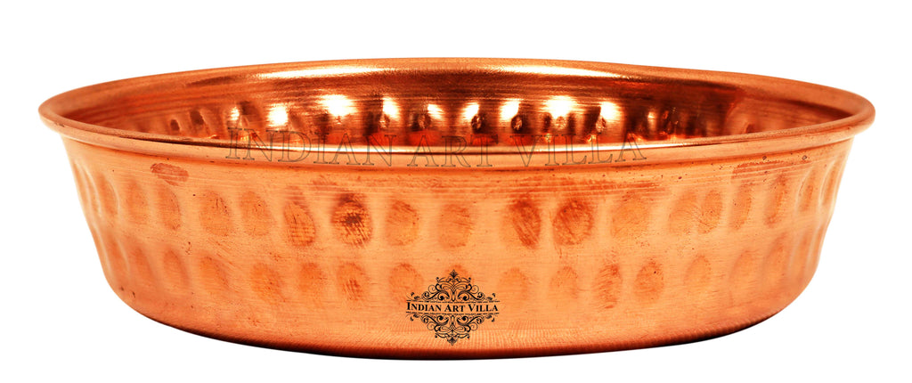 Indian Art Villa Presents Best Quality Pure Hammered Copper Rice Plate with a capacity of 150ml. We offer the best affordable price. This Beautiful Pure Hammered Copper Rice Plate can be used as a home décor item or they can also be gifted to your near and dear ones. Also, Make your home more lively and cheerful with this brilliant décor piece. Designed to accentuate the beauty and ambiance it brings soothing vibes to your abode and raises its contemporary look manifolds. It is sheer elegance and contemporary in look. It is durable and sturdy and with proper cleaning will shine as new every time. Indian Art Villa Copper items have antique designs. The item is highly durable, elegant, and a wonderful addition to your Home Décor.