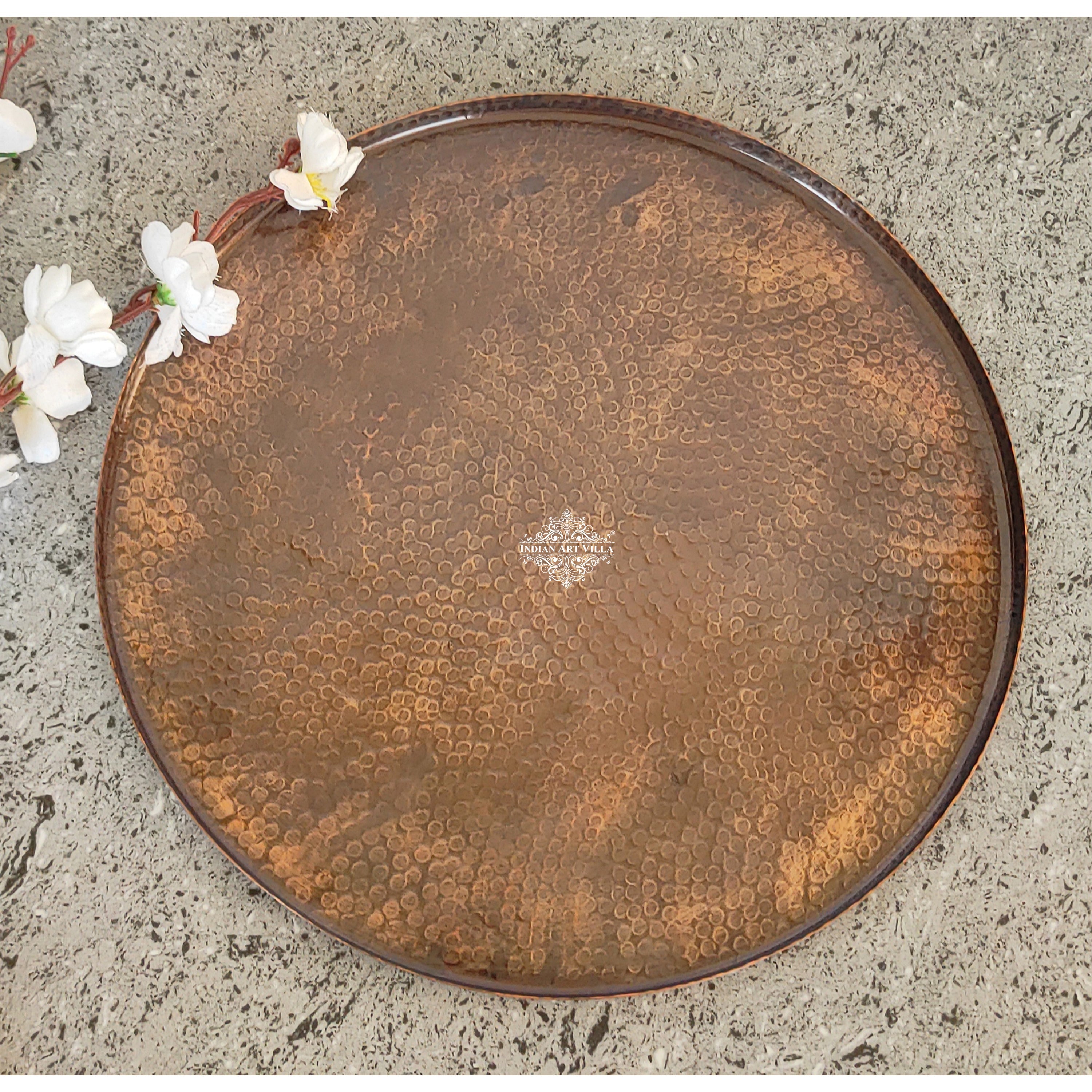 - Indian Art Villa Pure Copper Round Moon Tray Plate with Antiqe Dark Tone Hammered Design, it was almost impossible to find one that came in a design other than the plain one. Indian Art Villa Provide You with different designs to choose from, allowing you to pick your favorite design or collect them all for those who want a variety of options.